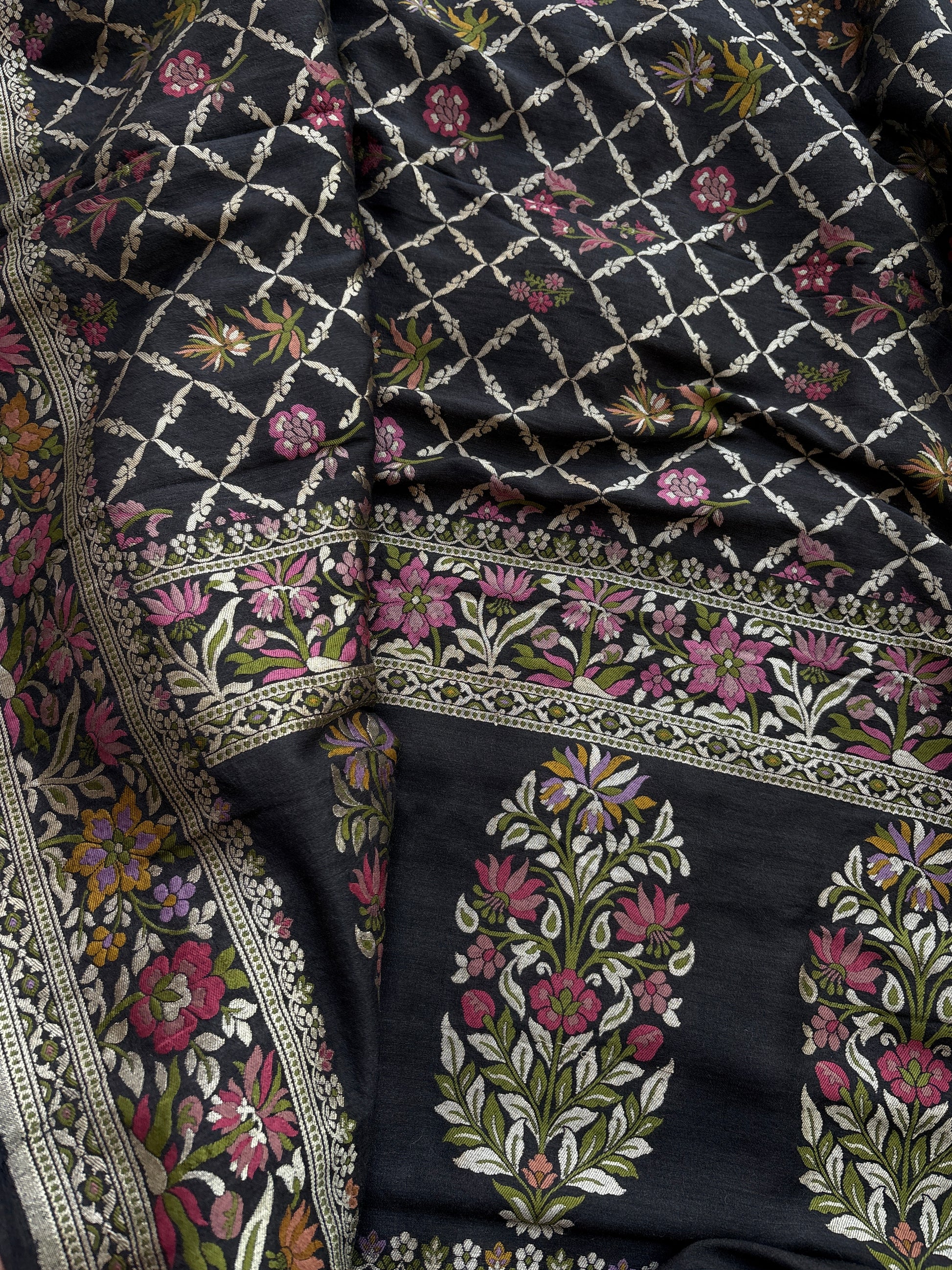 Pink full jaal kadhwa katan silk saree.