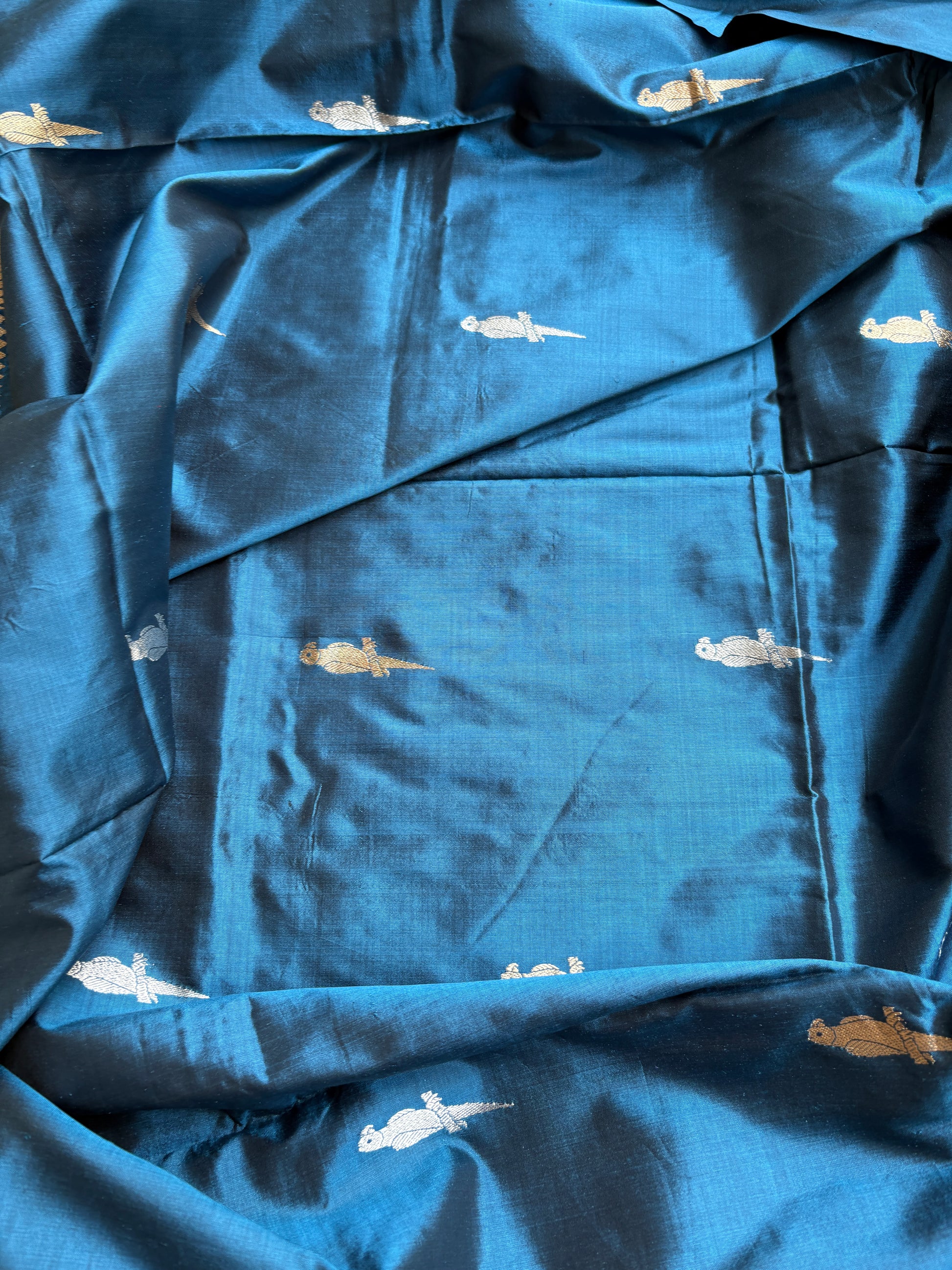 Blue pure handloom kora silk saree.