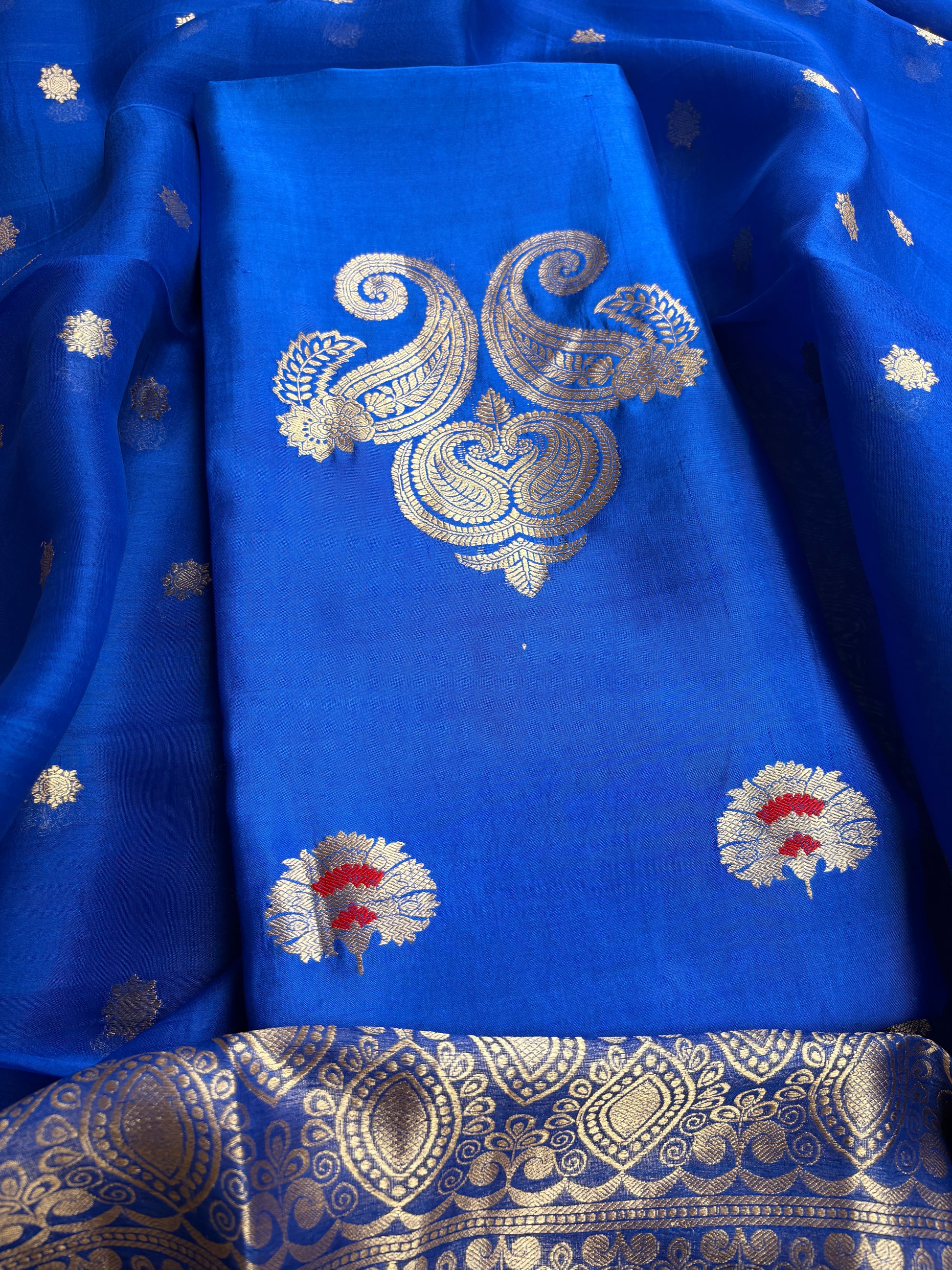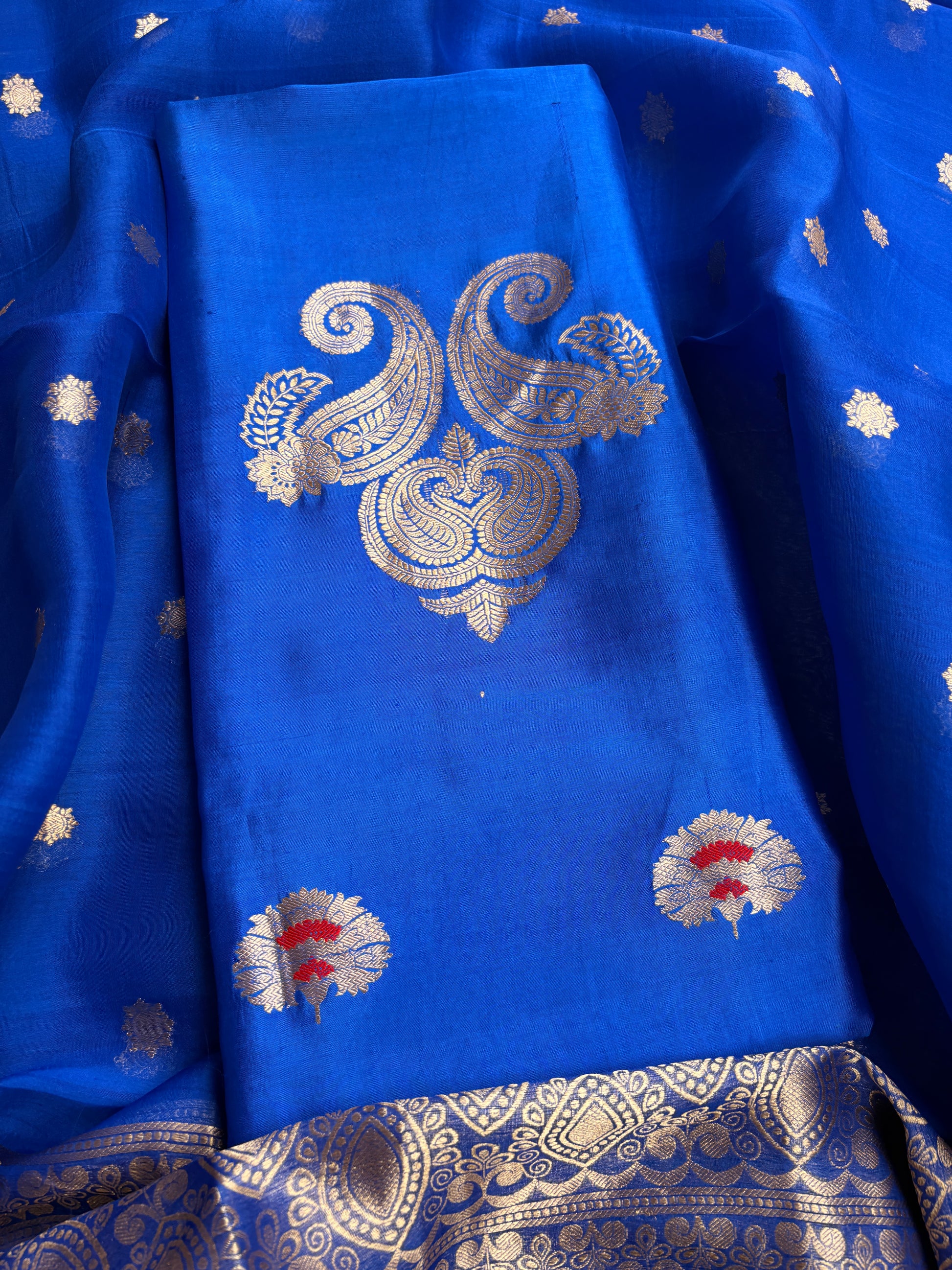 Blue mango silk kadhwa suit set