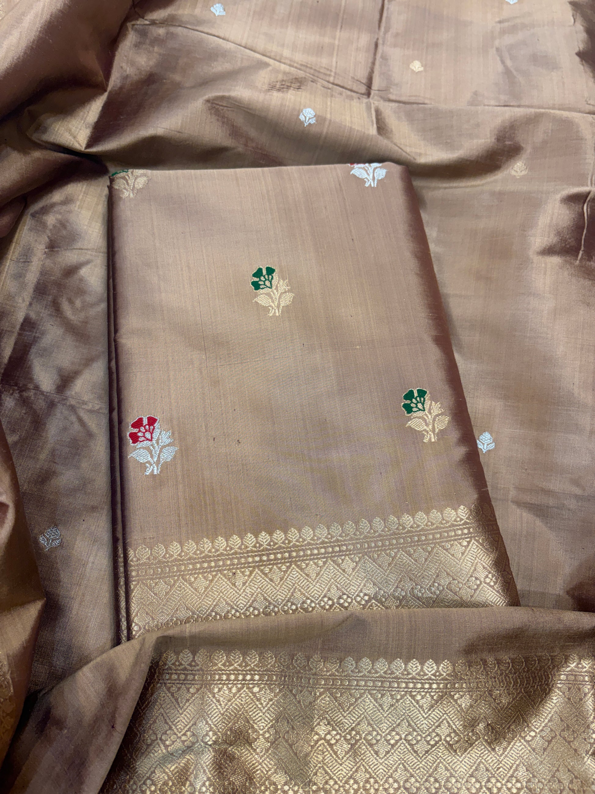 Earthy color katan silk kadhwa suit set