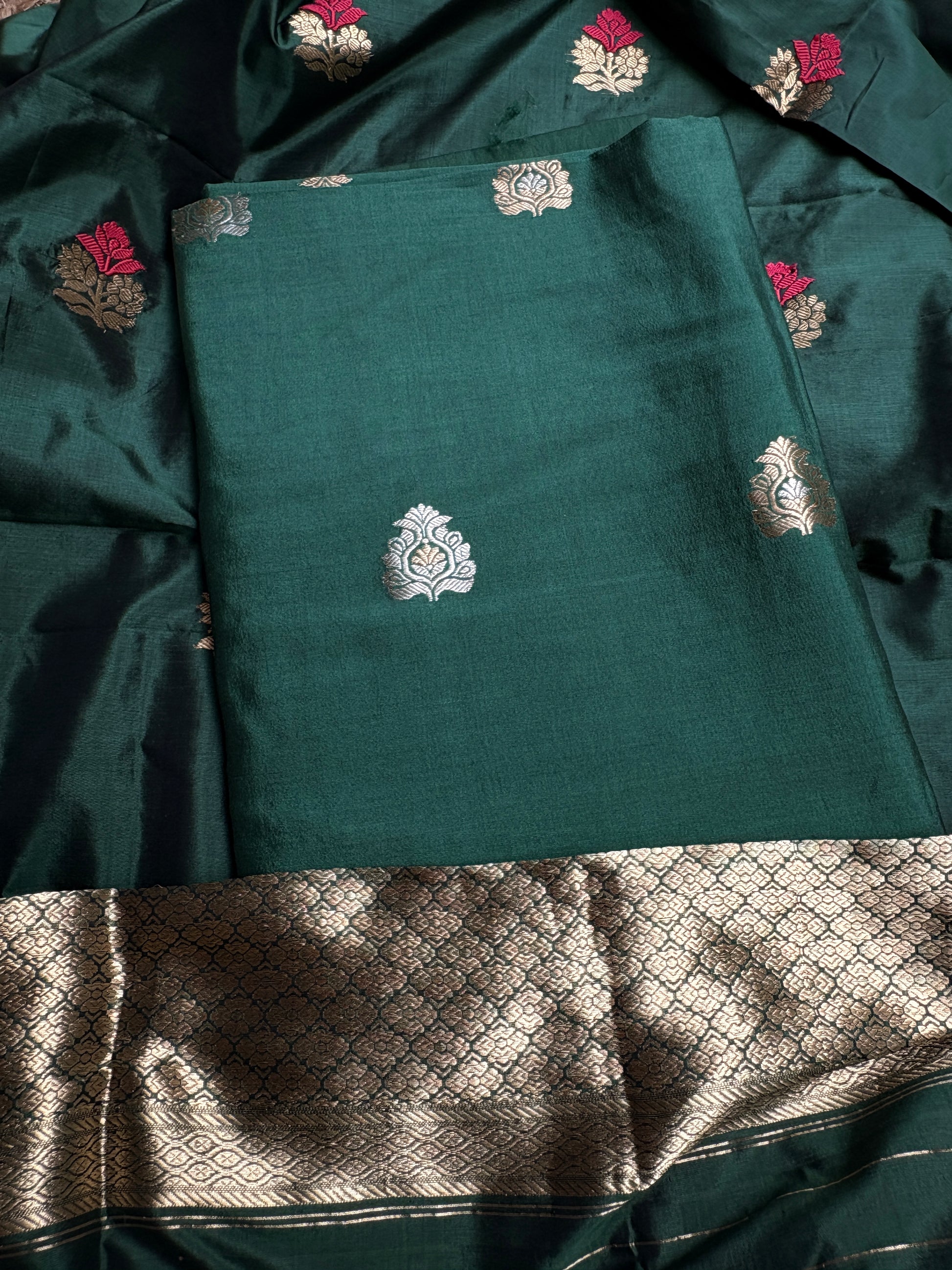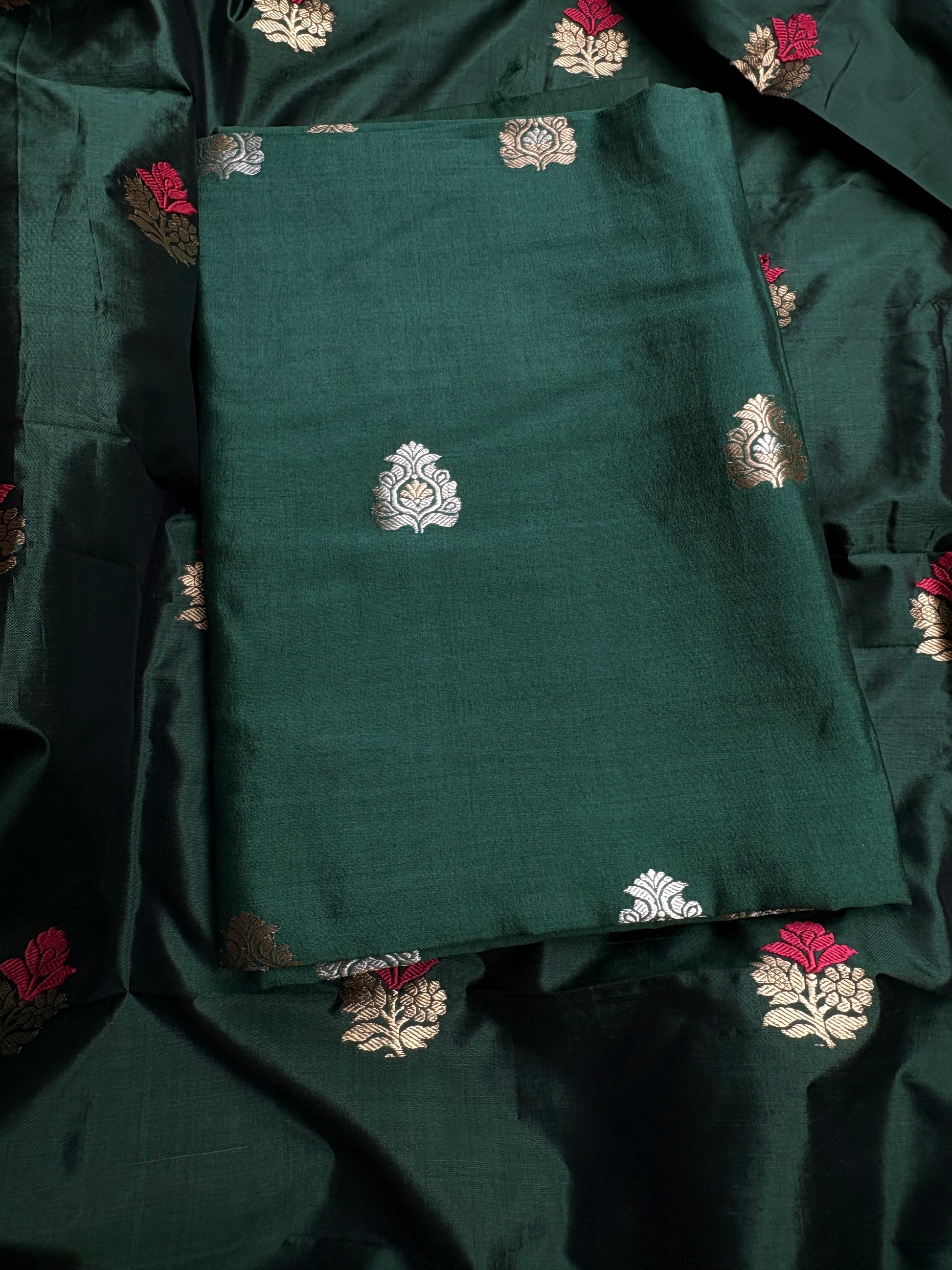 Green Chiniya silk kurta, bottom, katan silk kadhwa dupatta