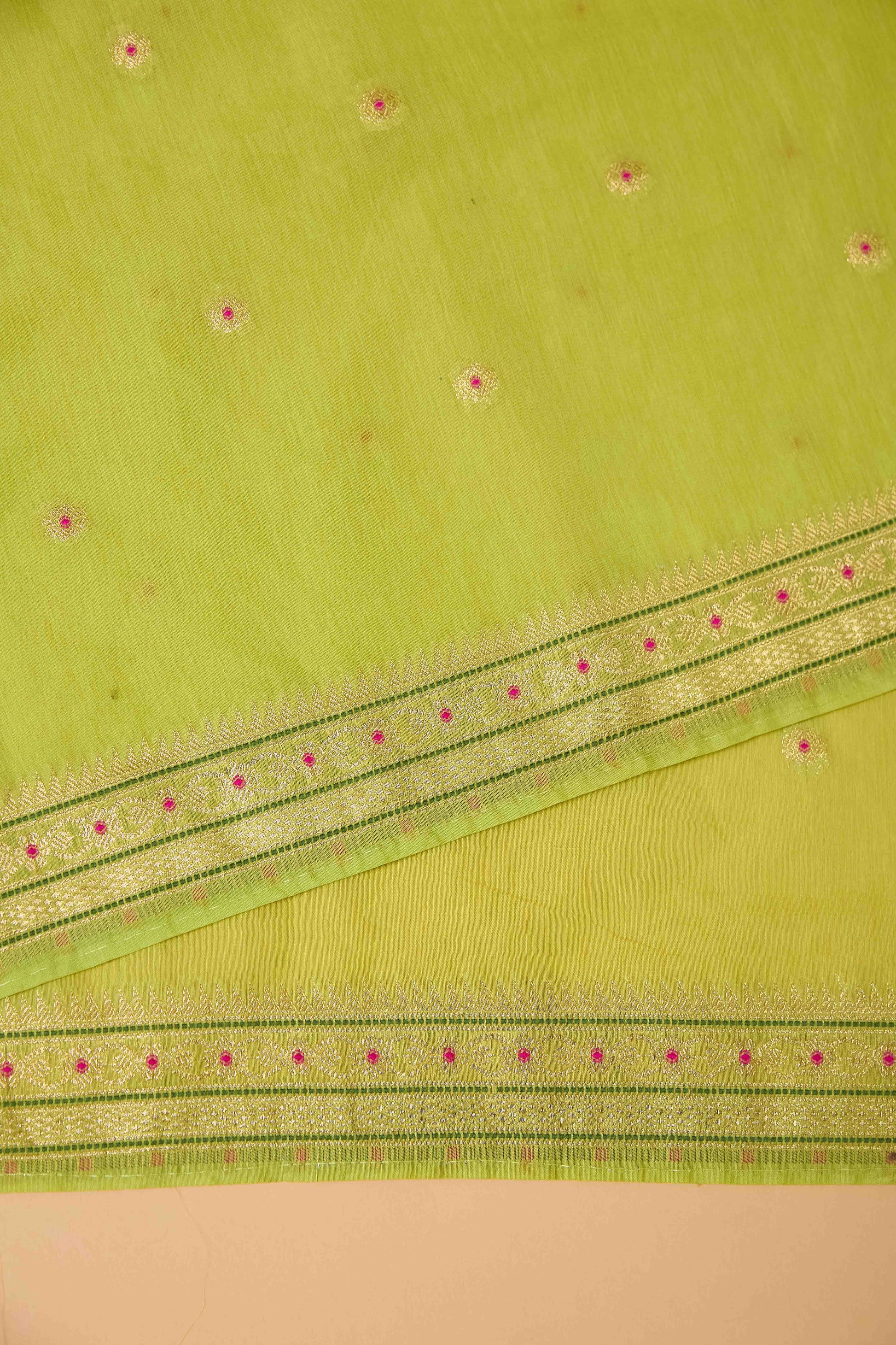 Yellow Full Jaal Meenakari weaving chanderi cotton 3 pieces set.