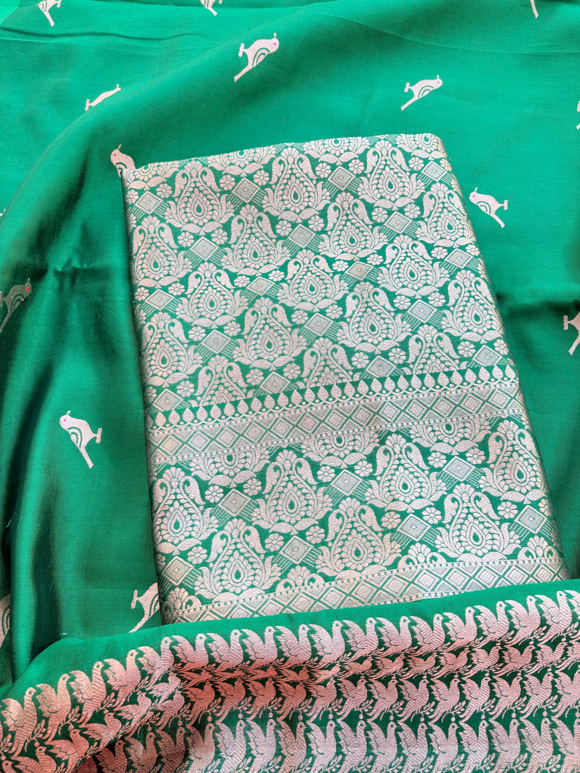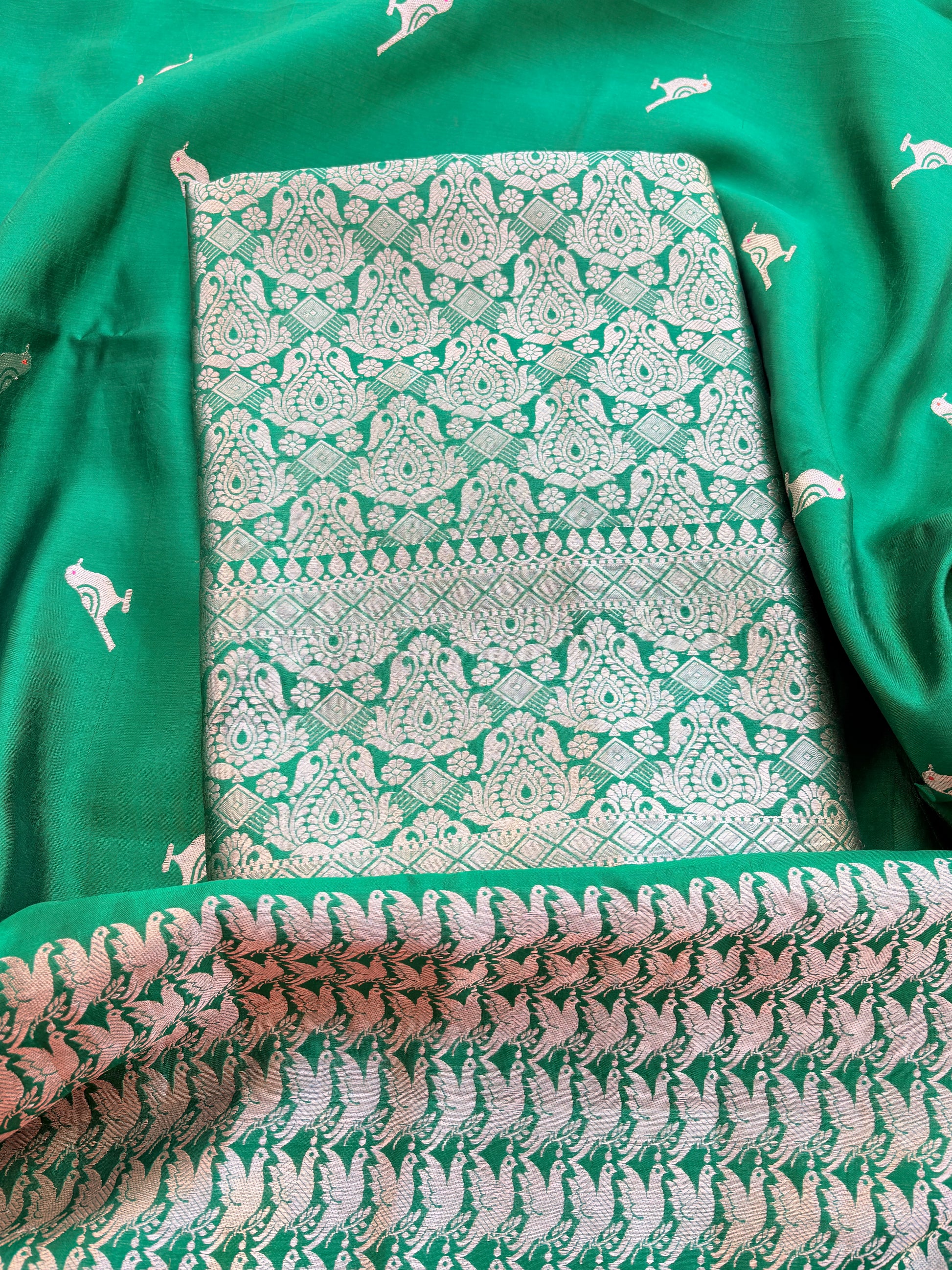 Green mango silk kadhwa brocade suit set