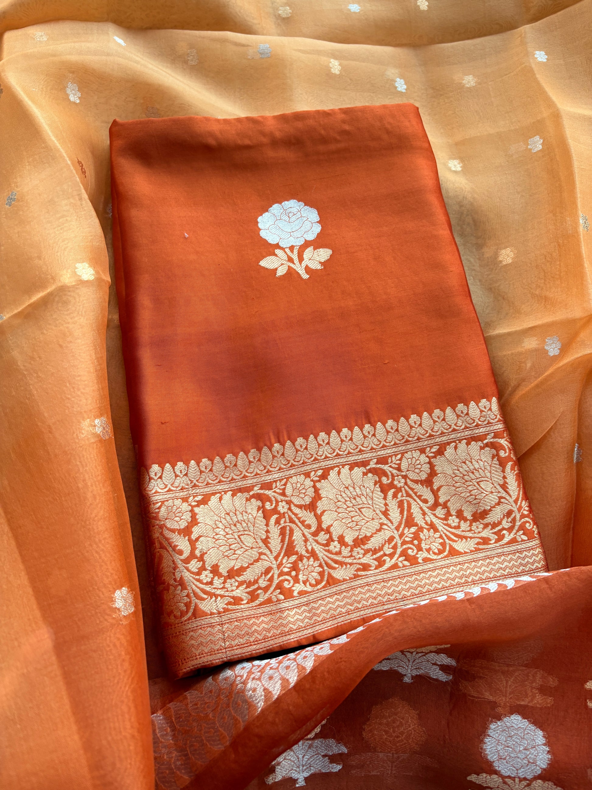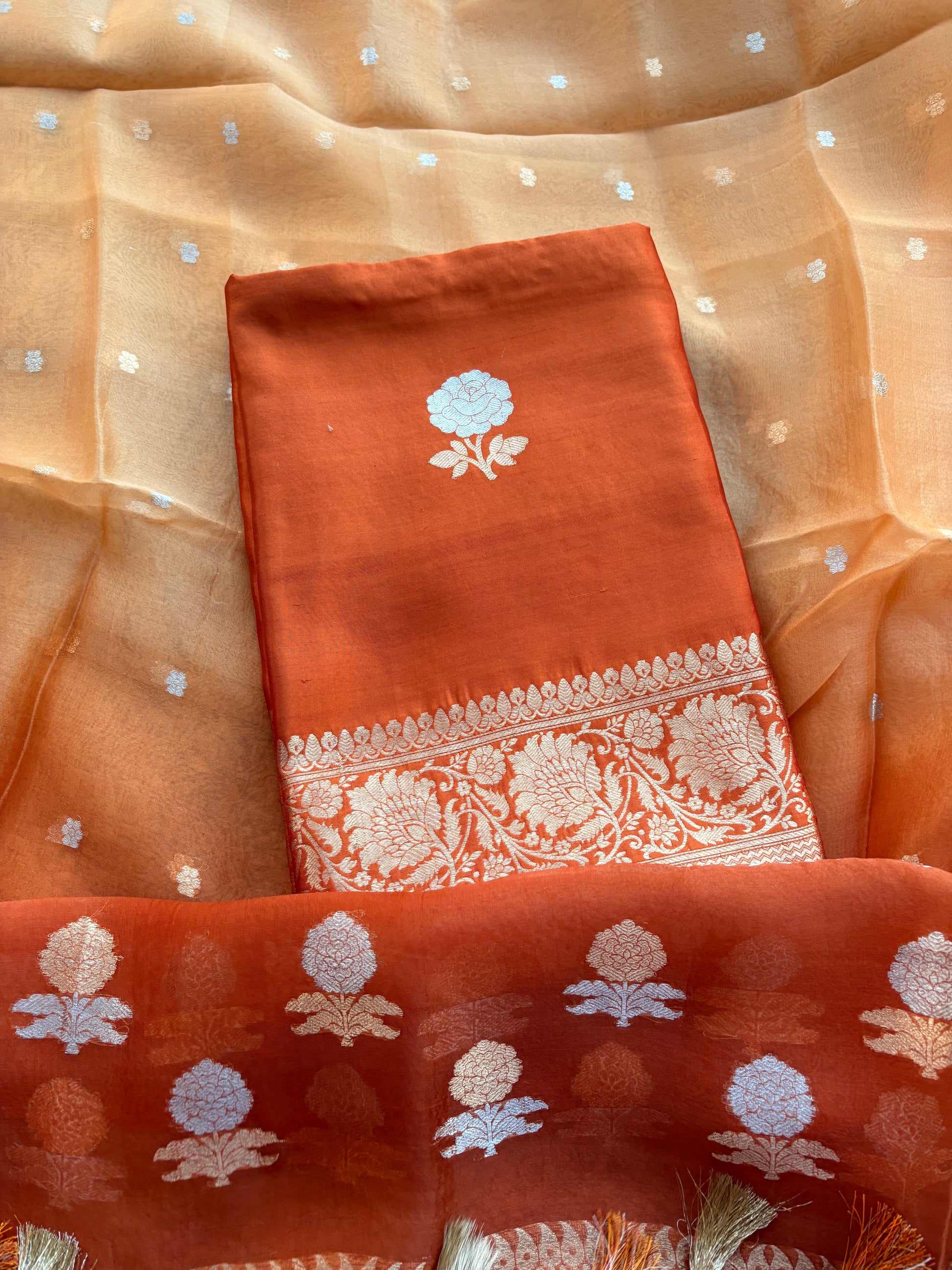 Orange Chiniya silk kurta , bottom and shaded dupatta