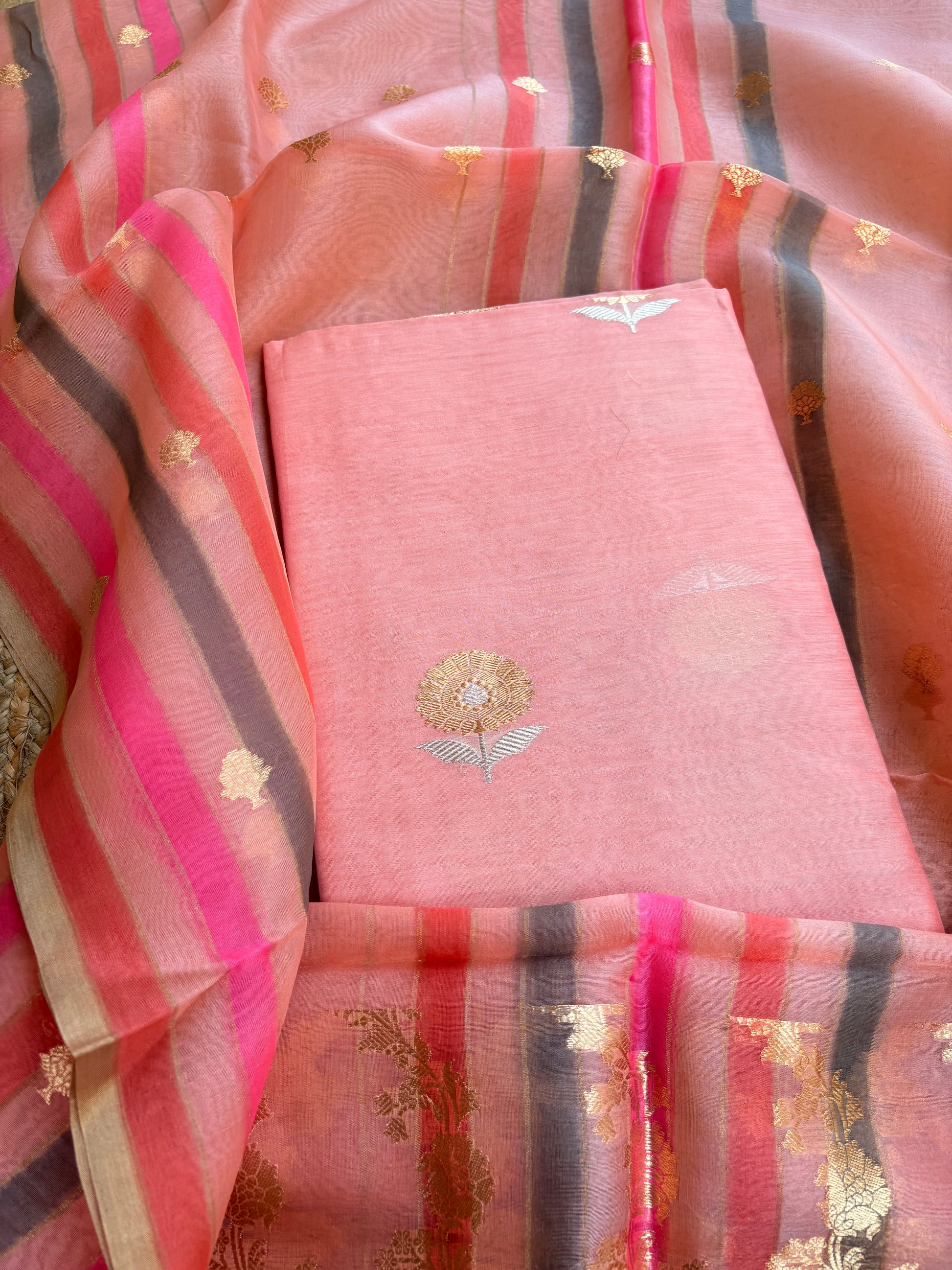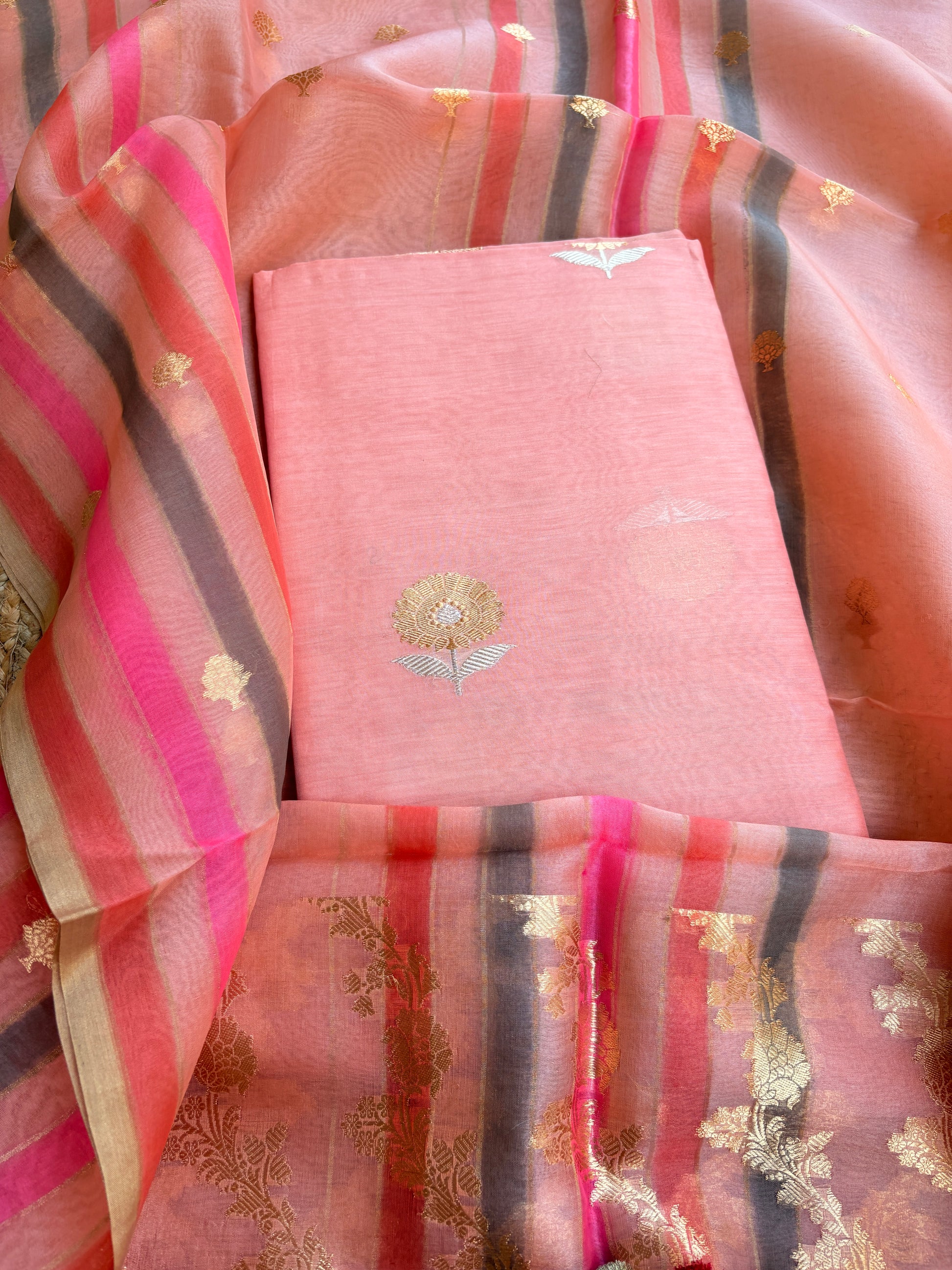 Peach Chiniya silk kurta , bottom and kora kadhwa dupatta