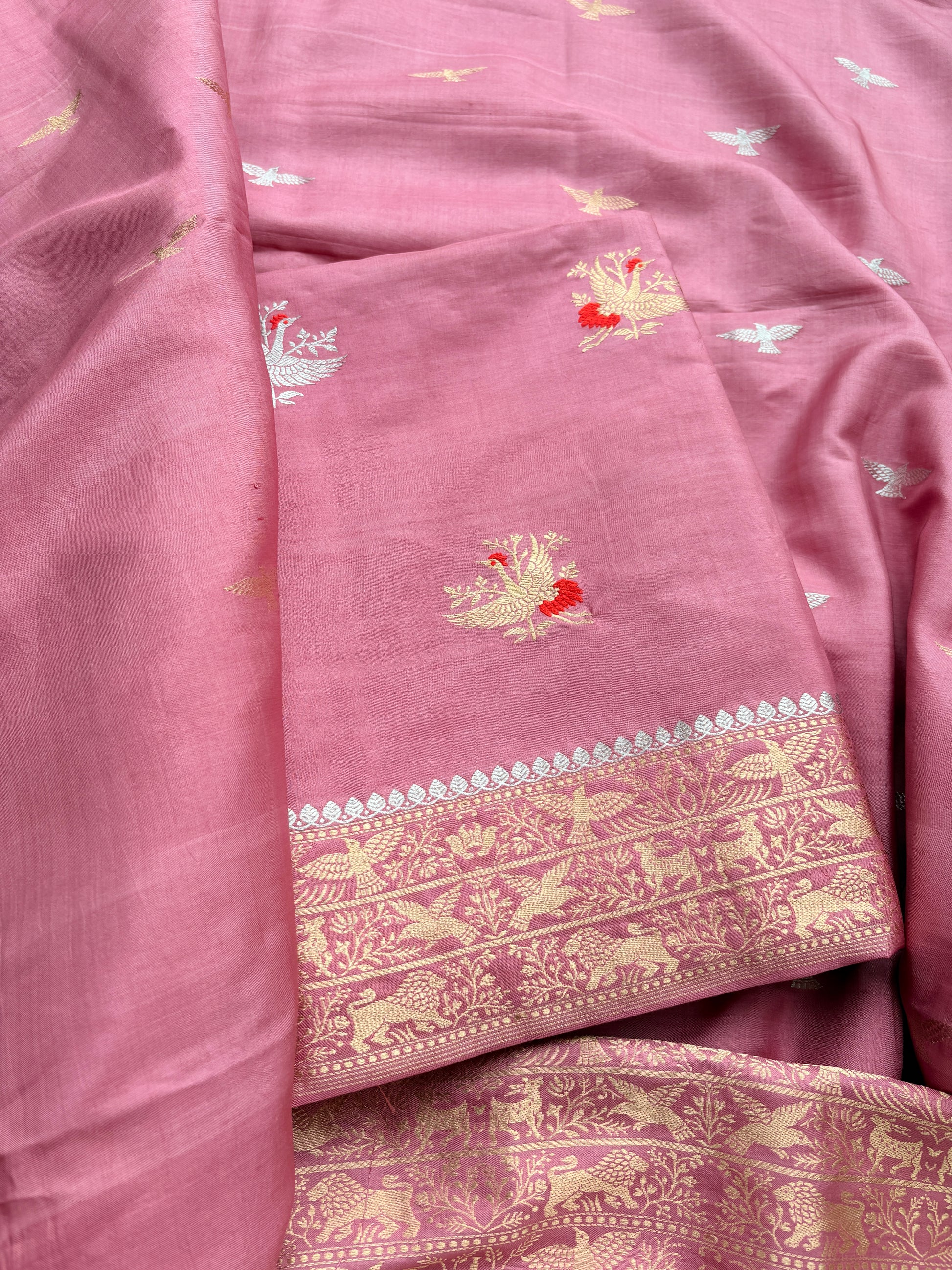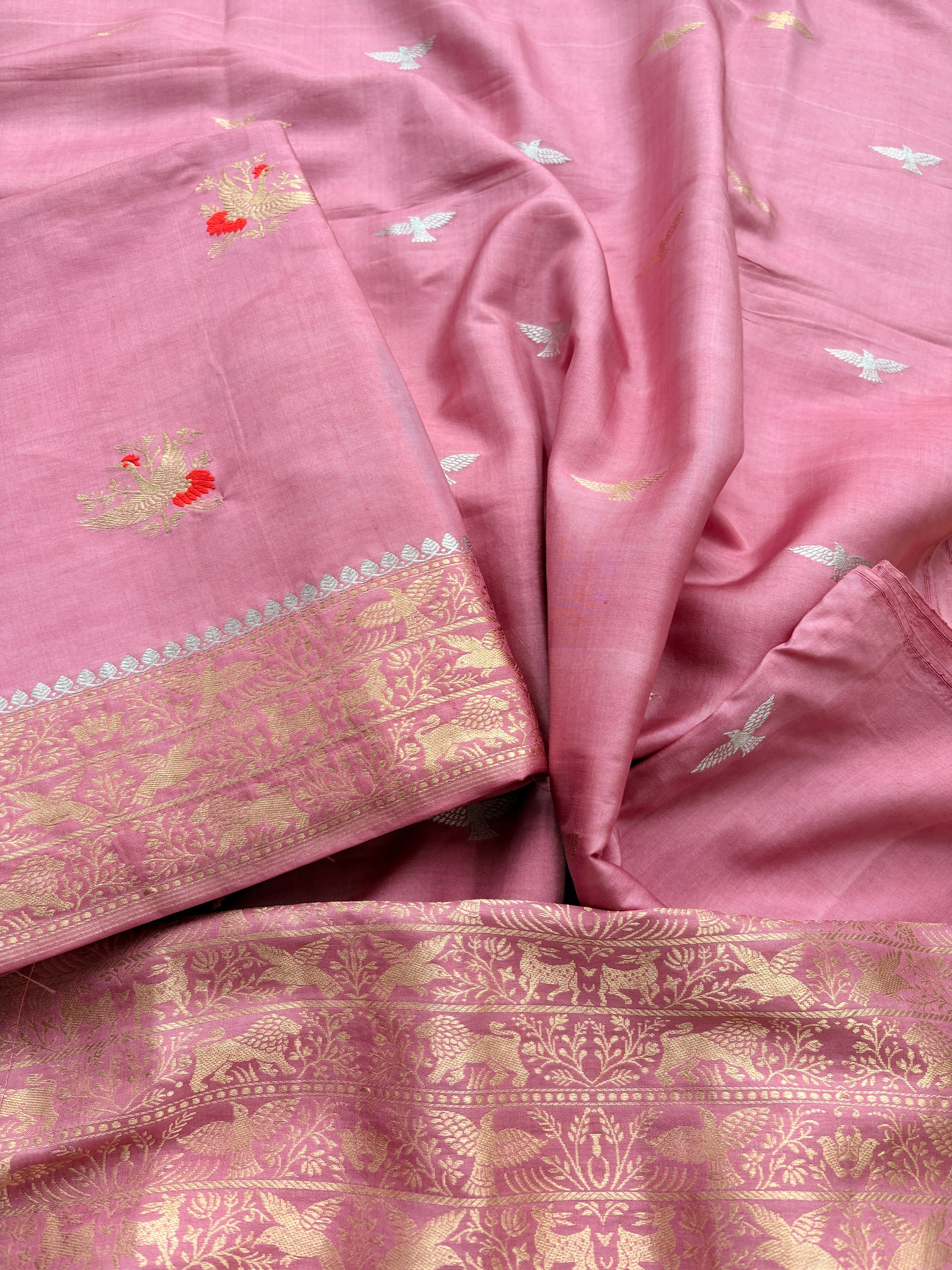 Pink full jaal kadhwa katan silk saree.