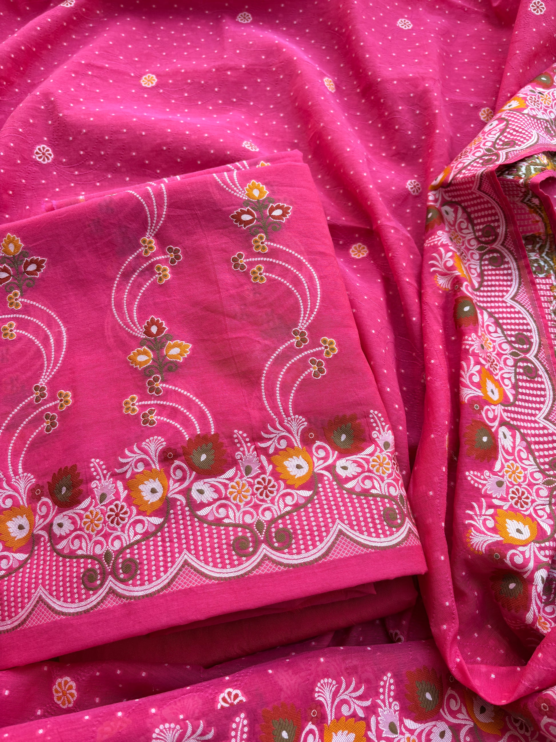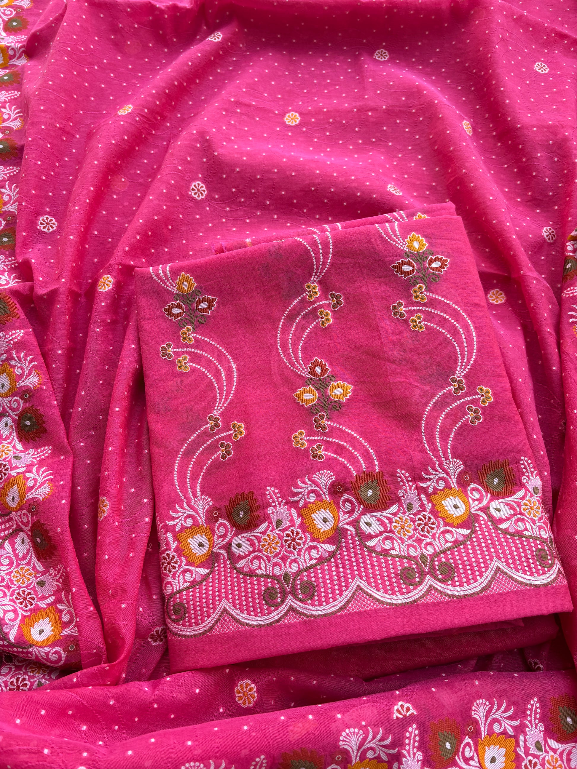 - Each suit is hand-dyed and is made of Pure Chanderi Cotton.