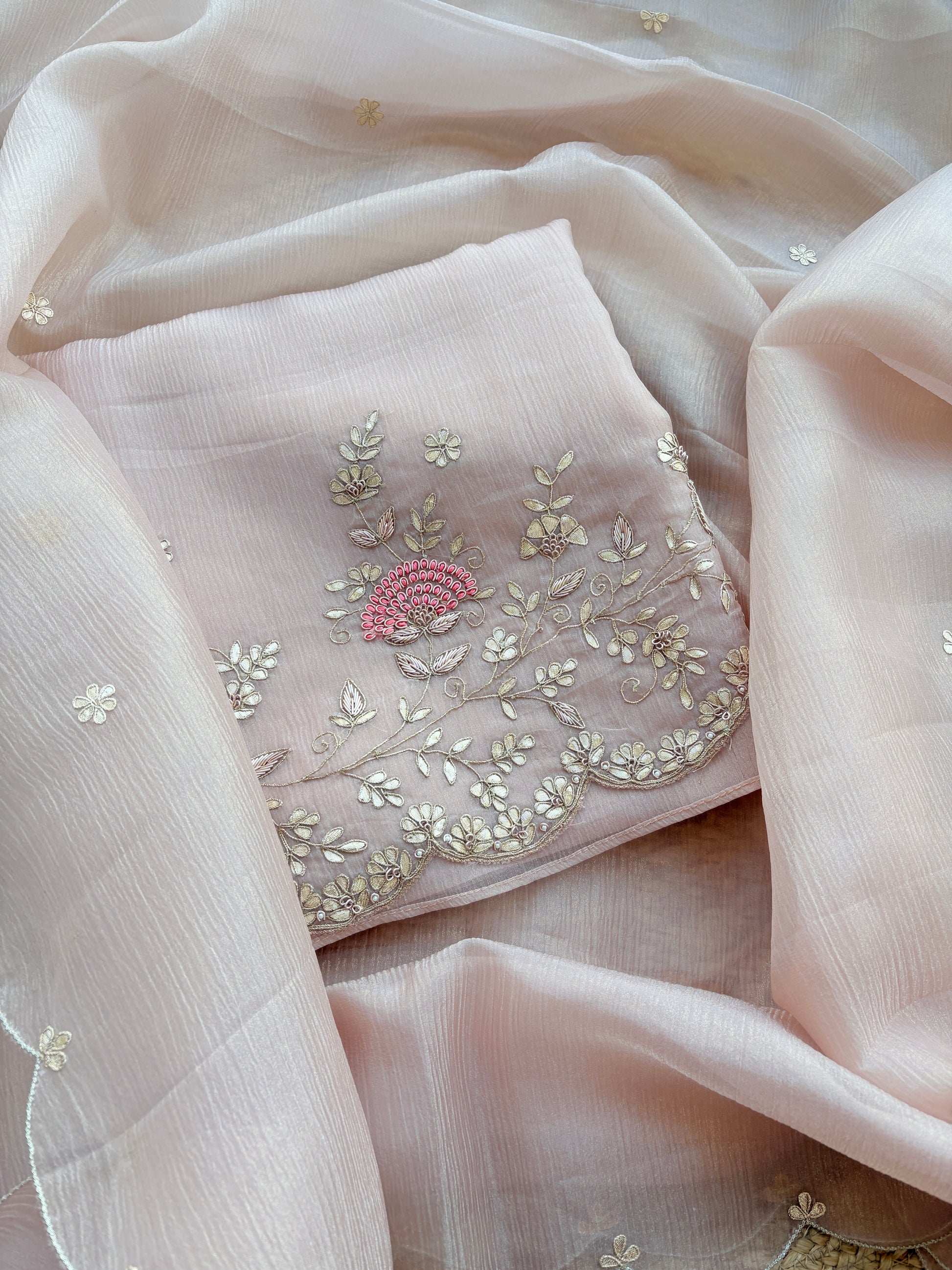 Pink full jaal kadhwa katan silk saree.
