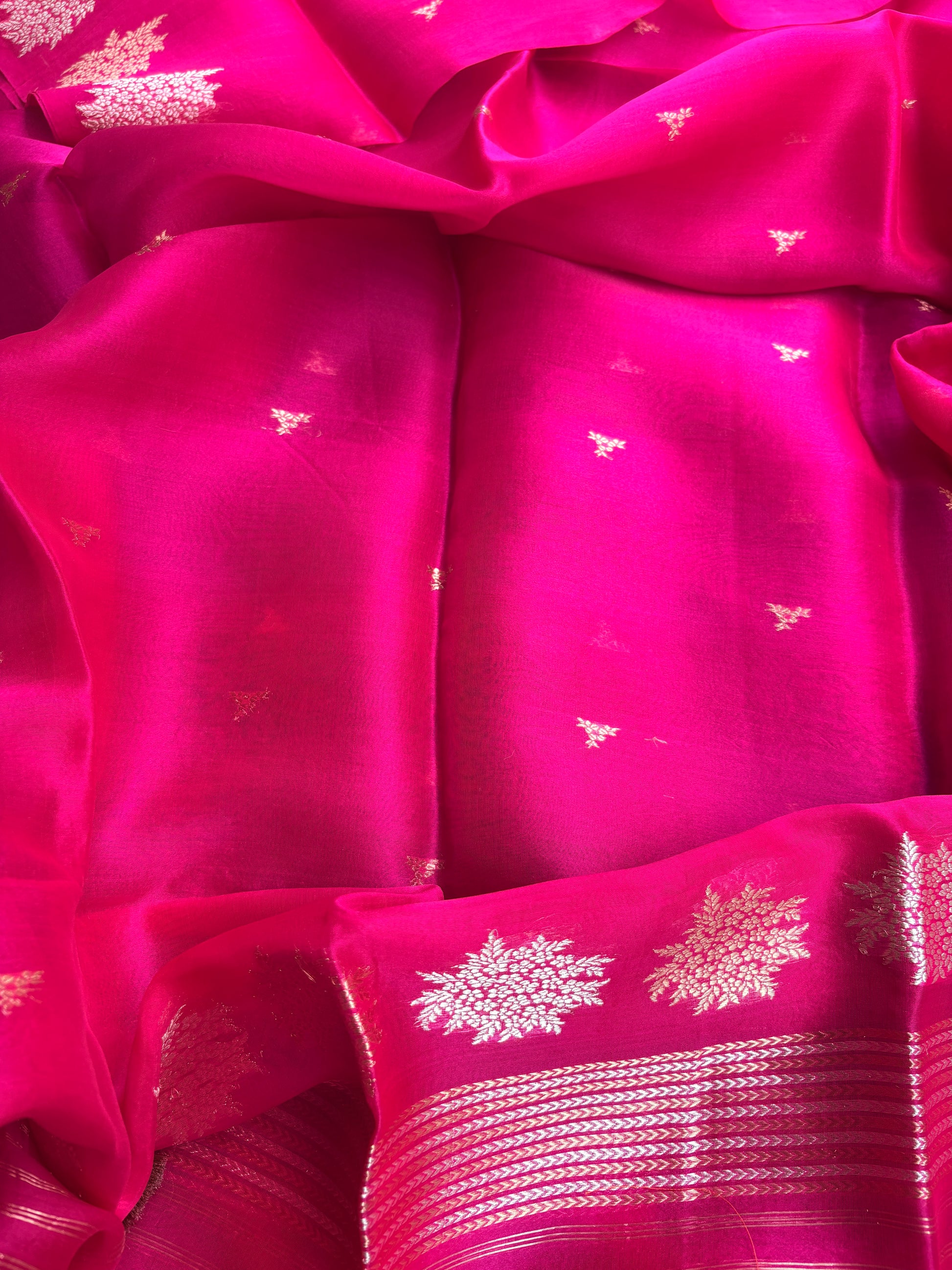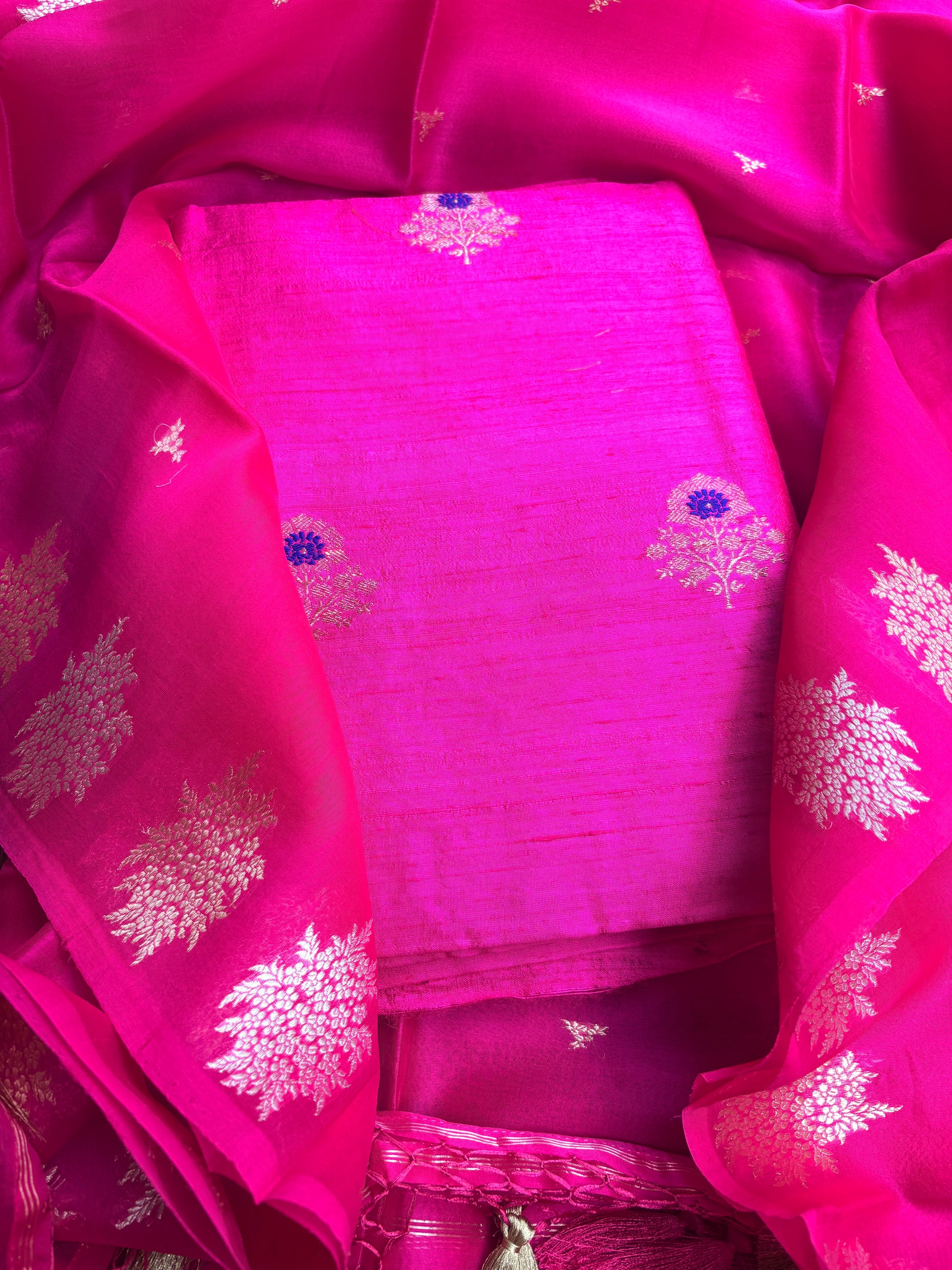 Pink kadhwa meenadar raw silk Kurta, bottom , kora kadhwa dupatta