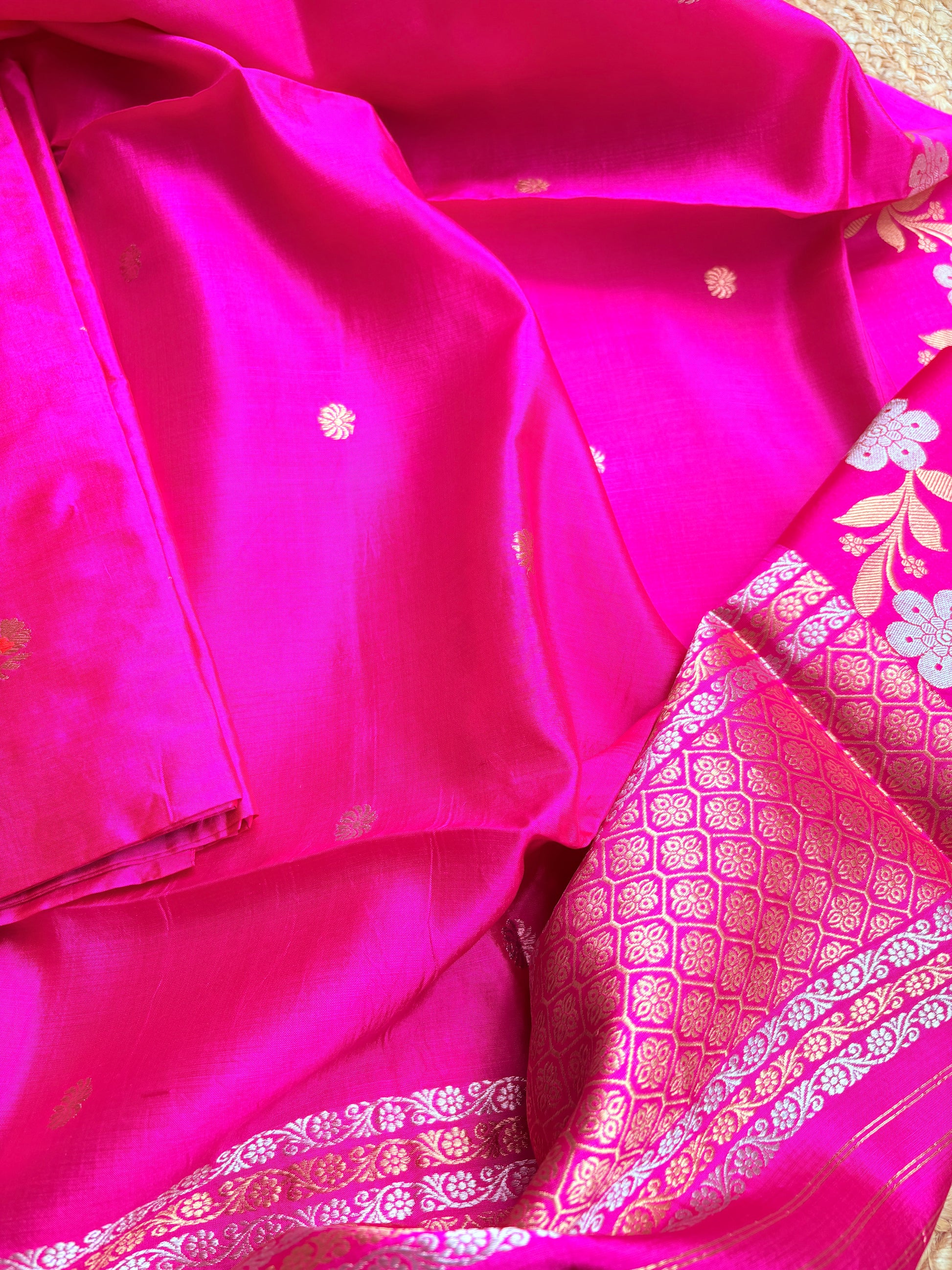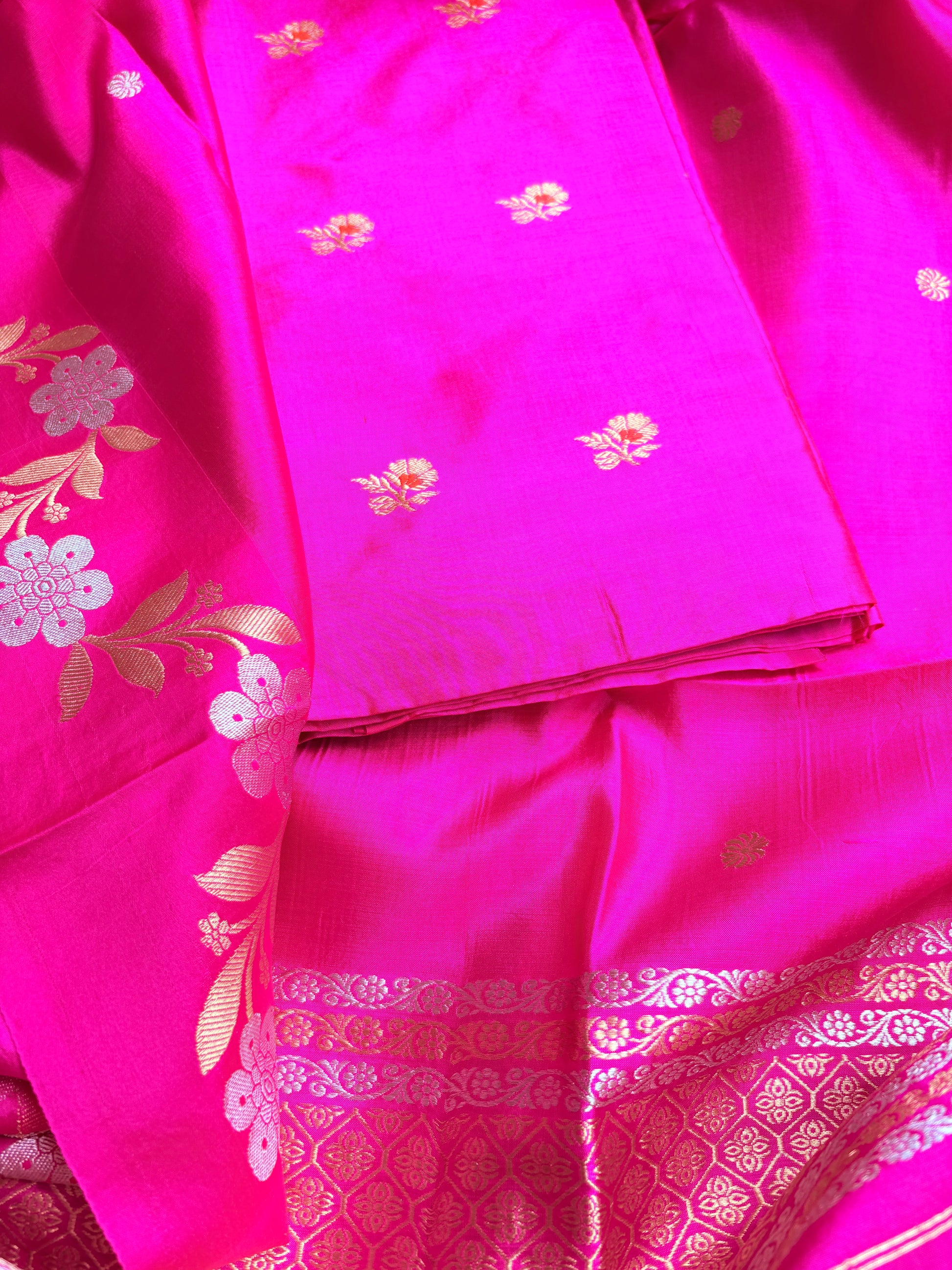 Pink full jaal kadhwa katan silk saree.