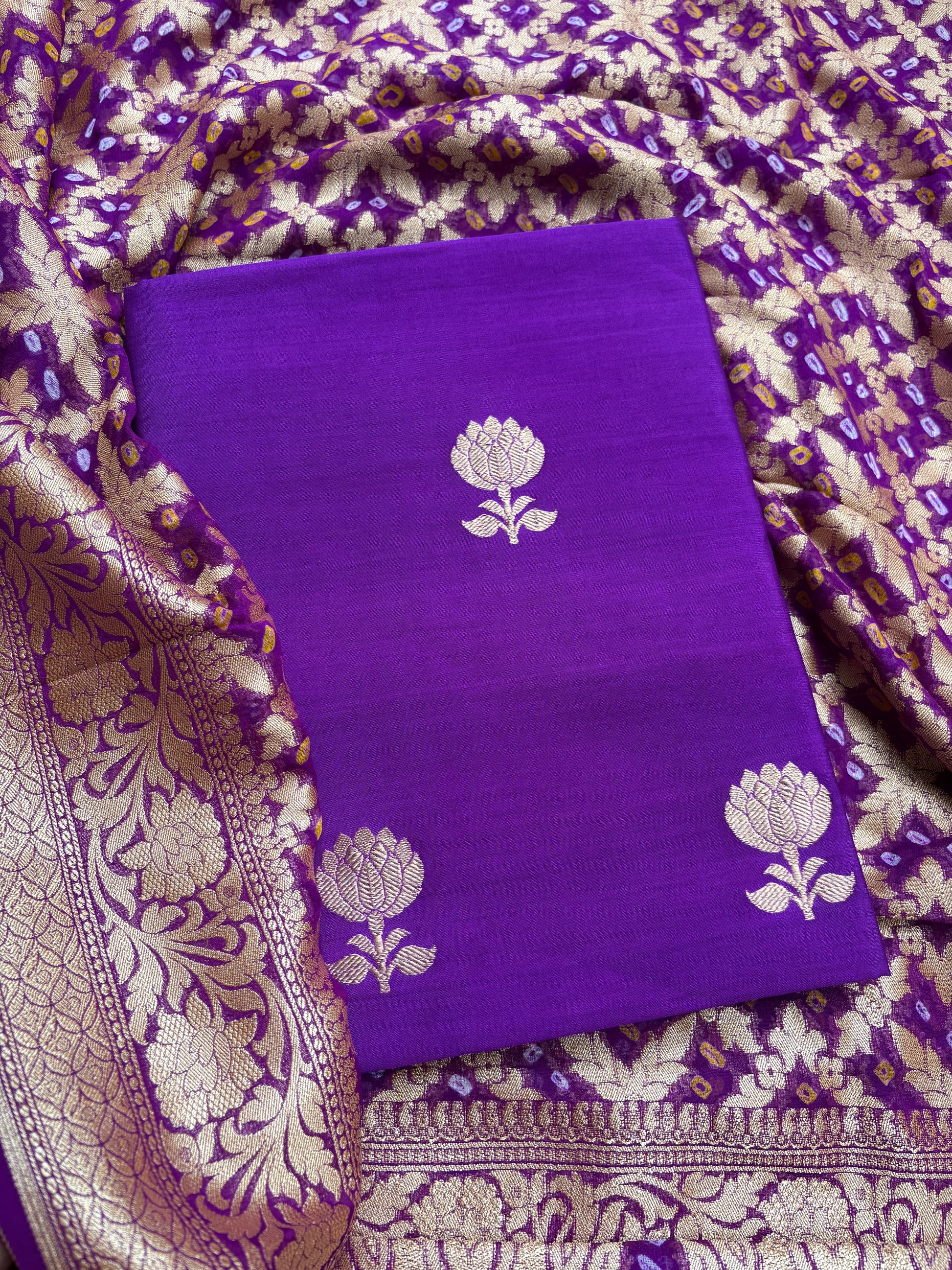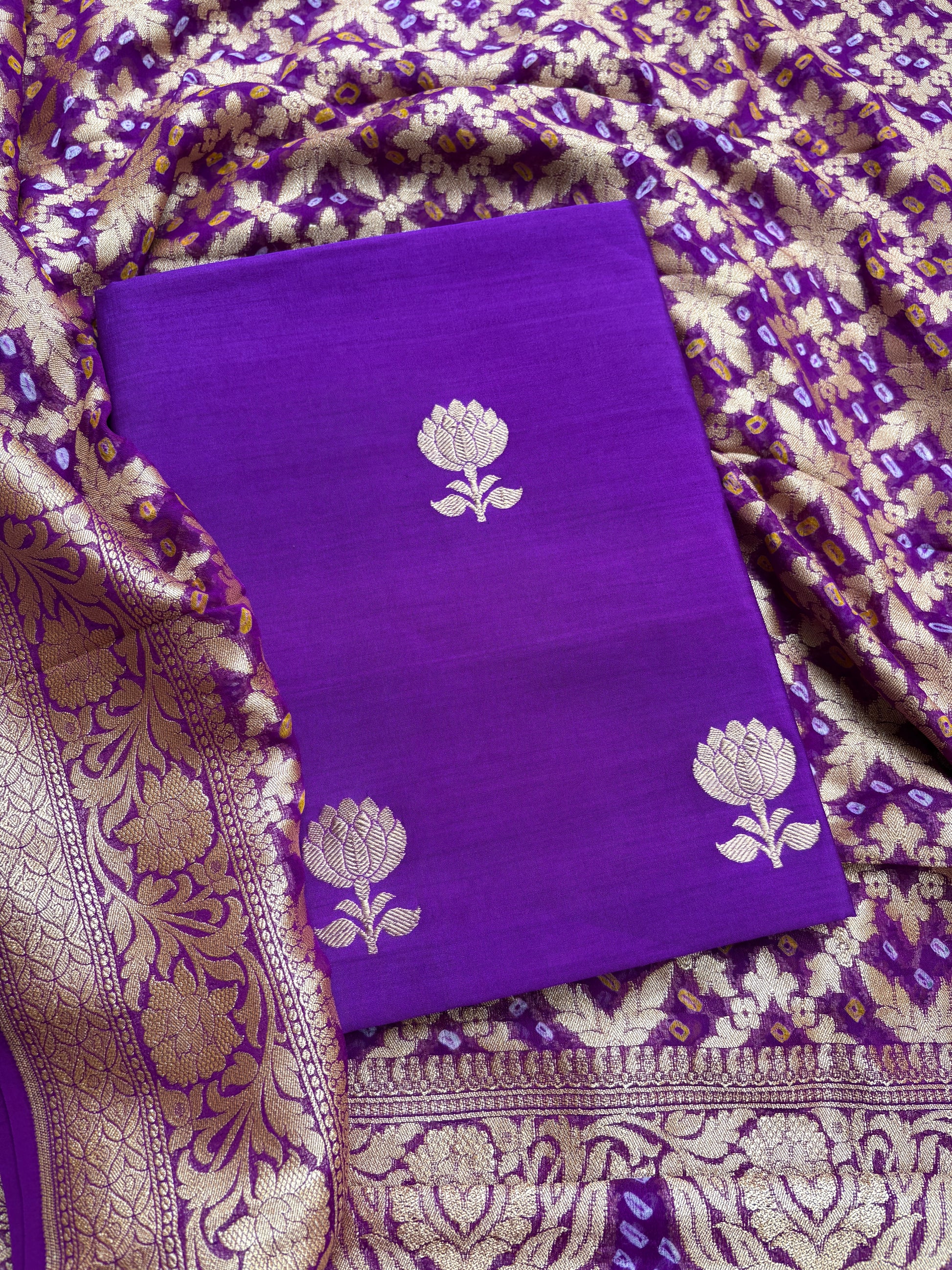Purple Chiniya kurta , bottom khaadi bandhani dupatta