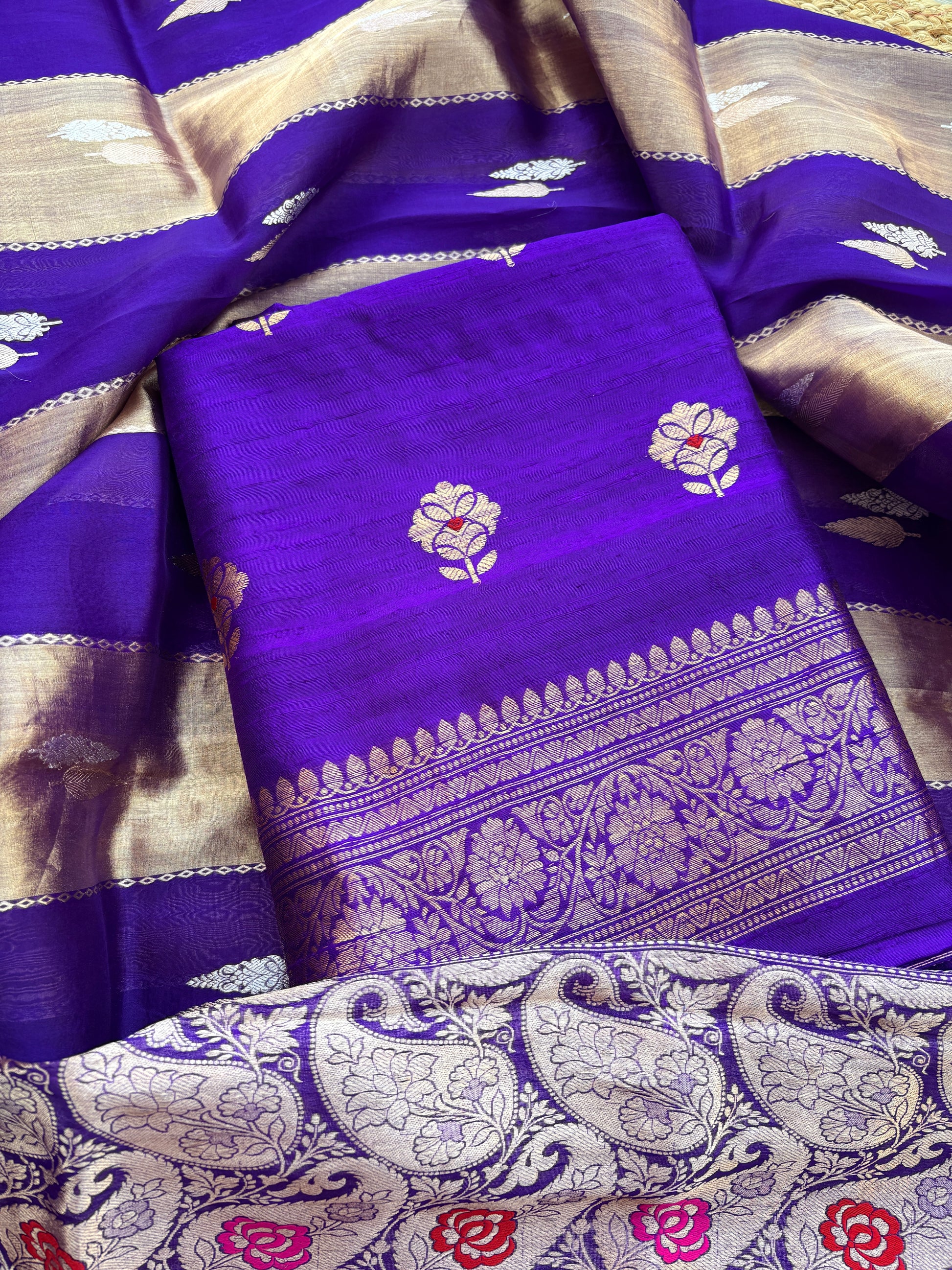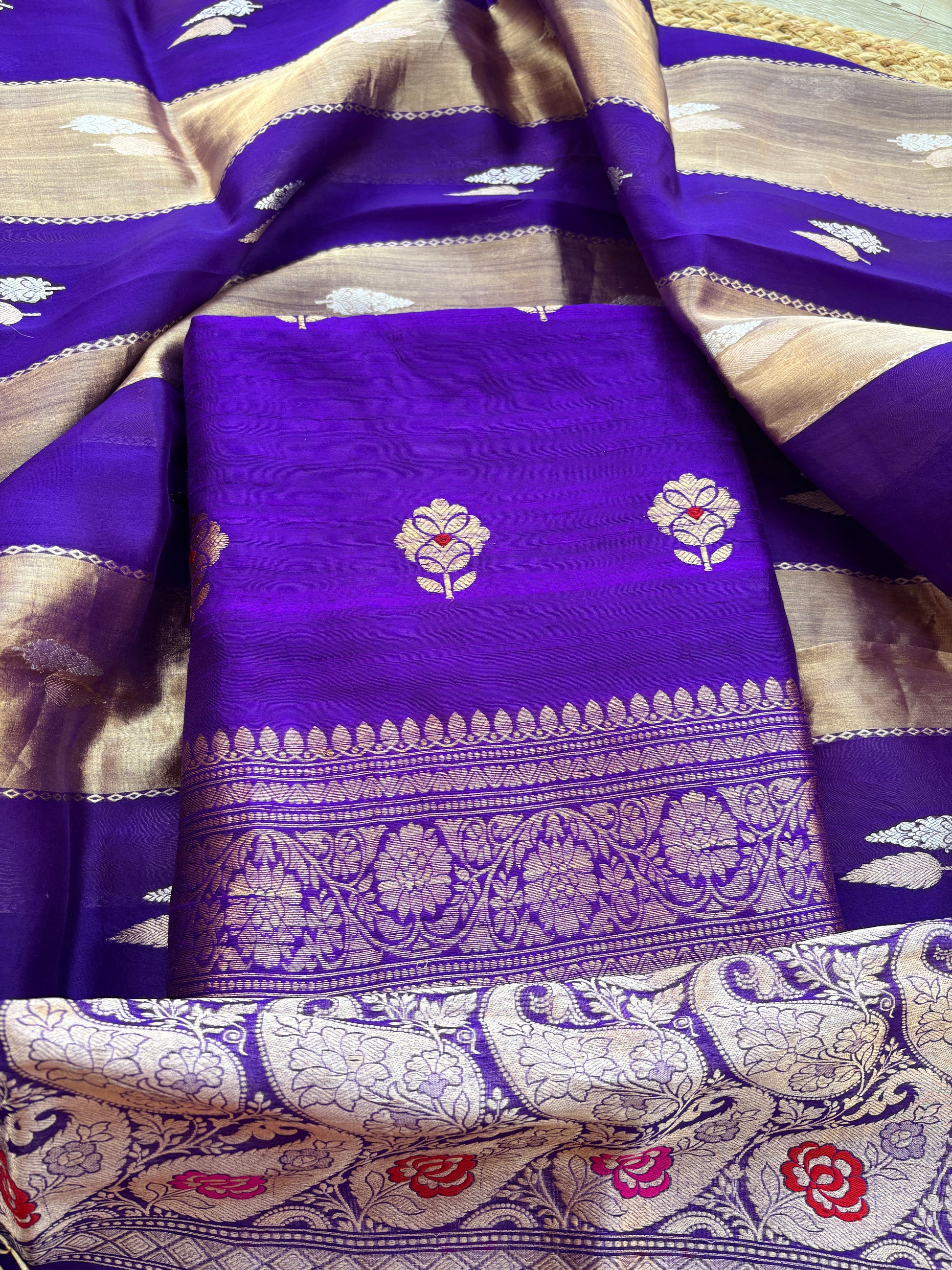 Purple raw silk kurta, bottom and kora tissue dupatta