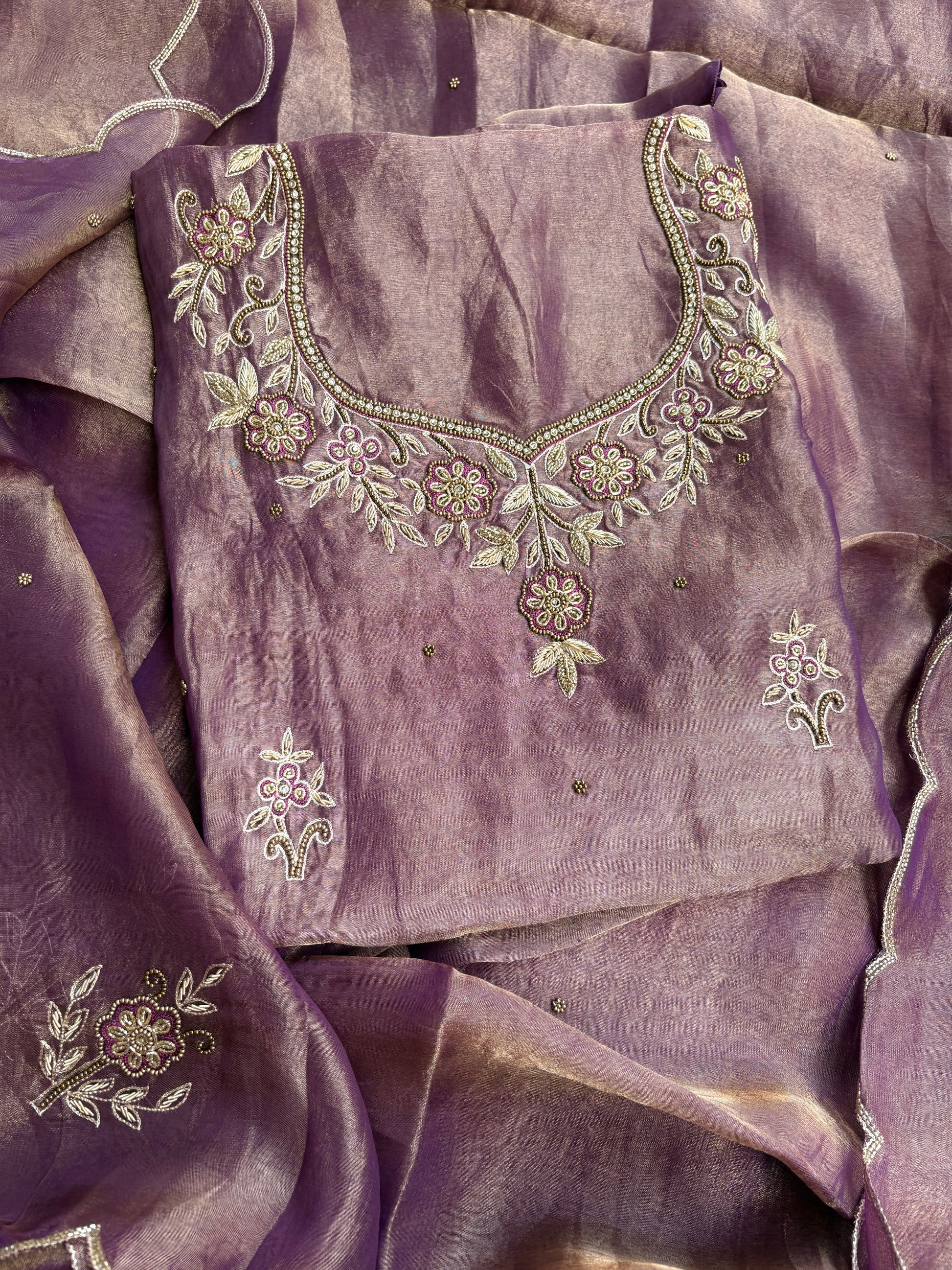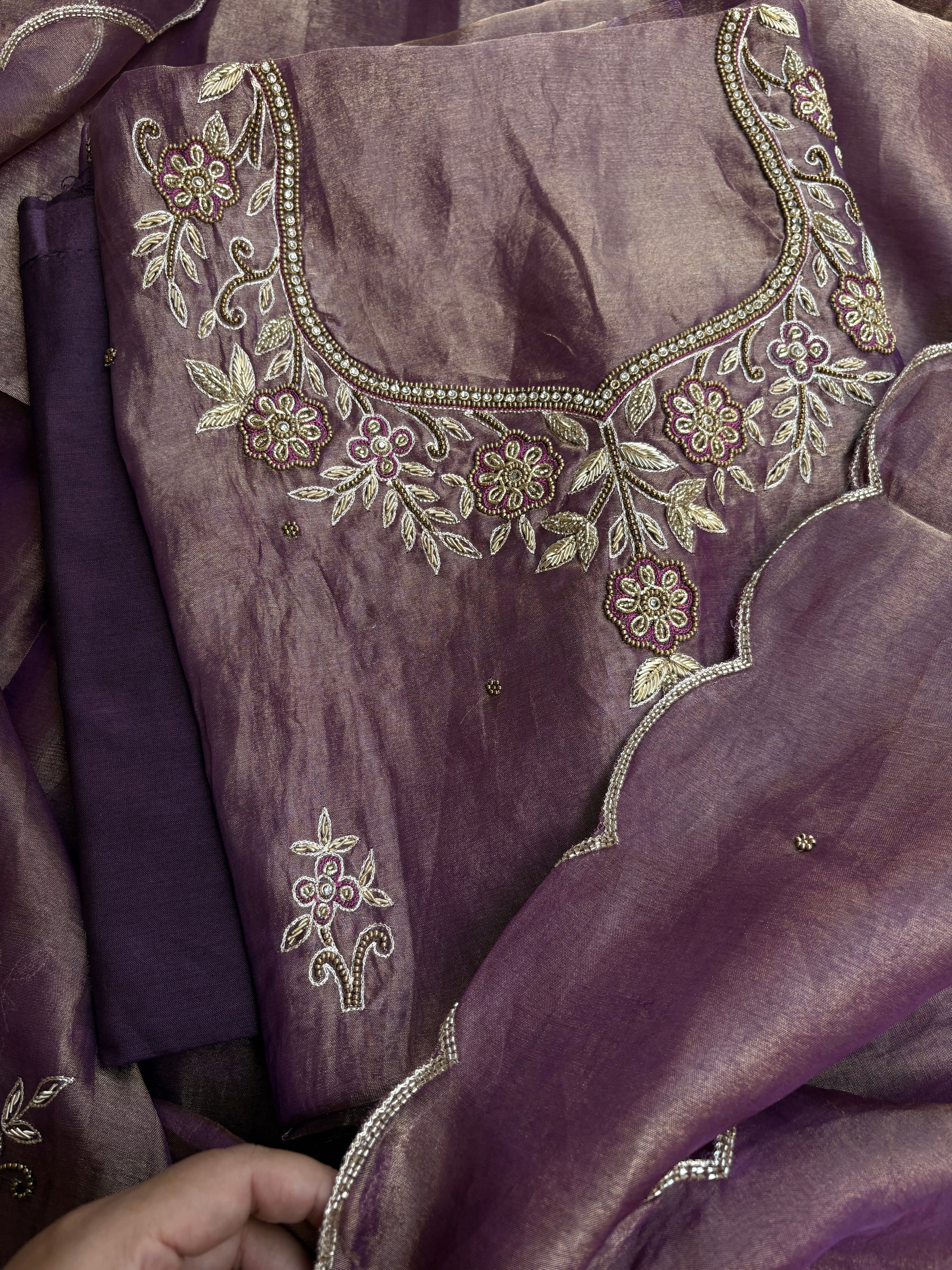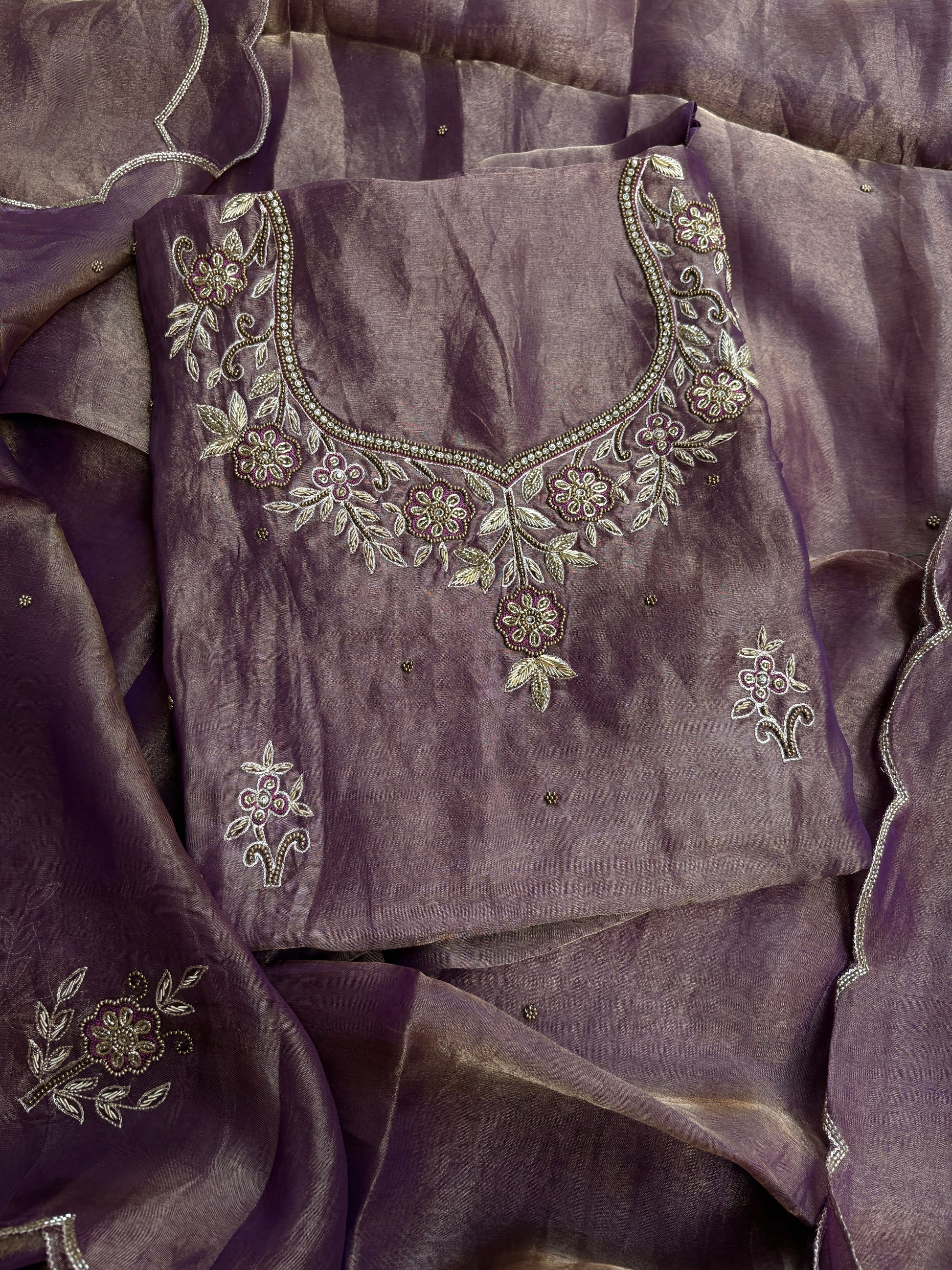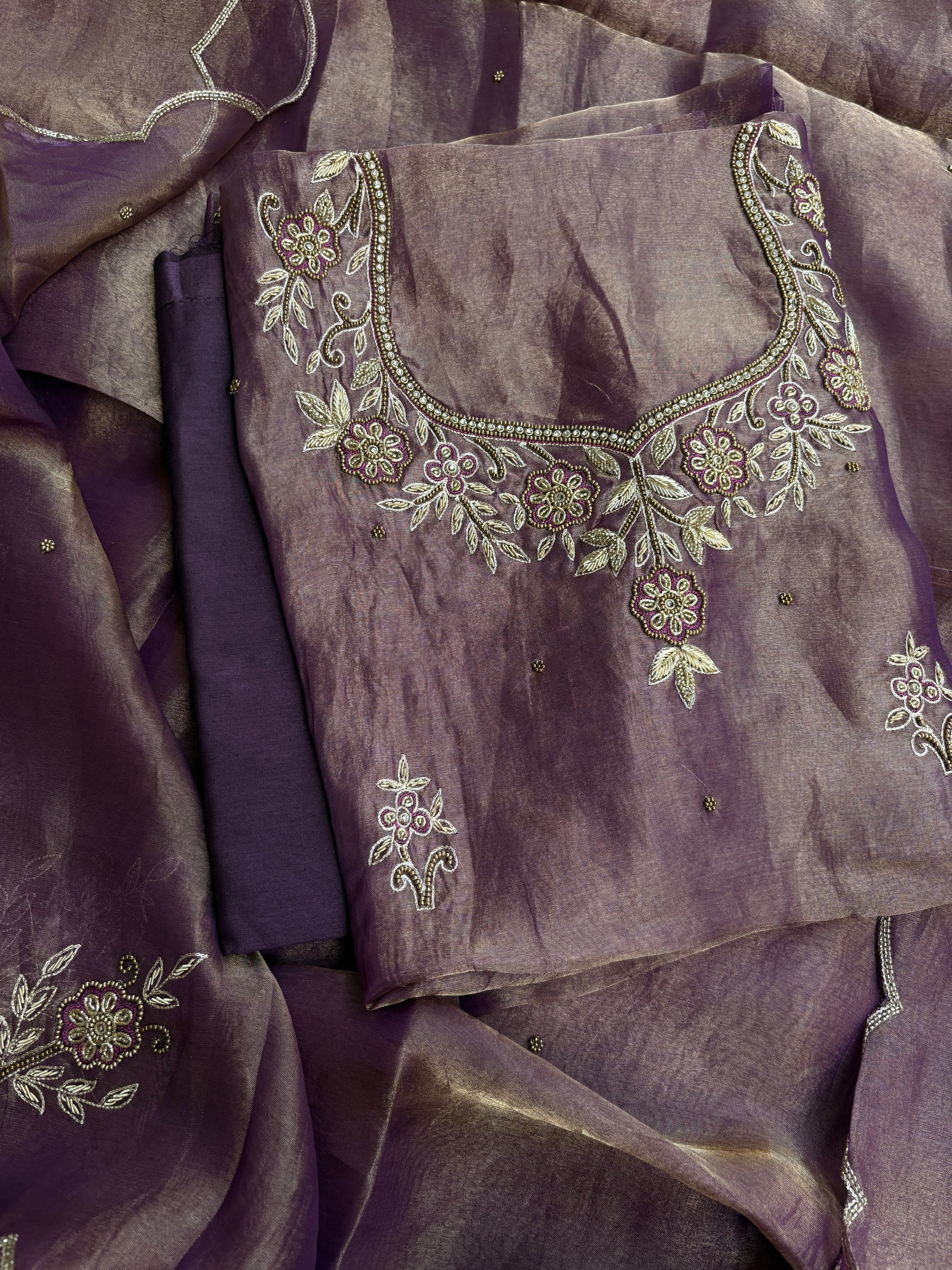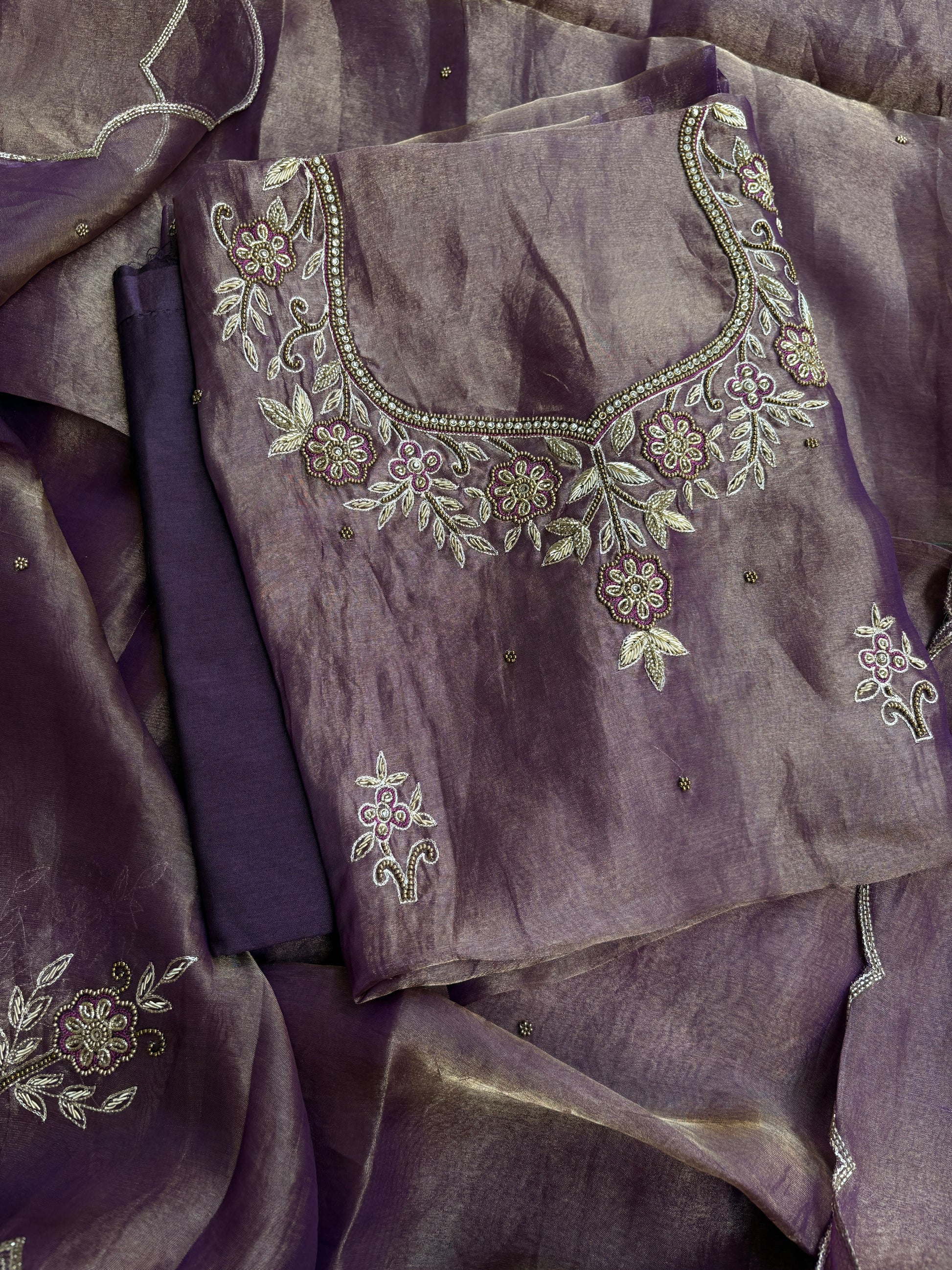 Purple tissue hand embroidered suit set