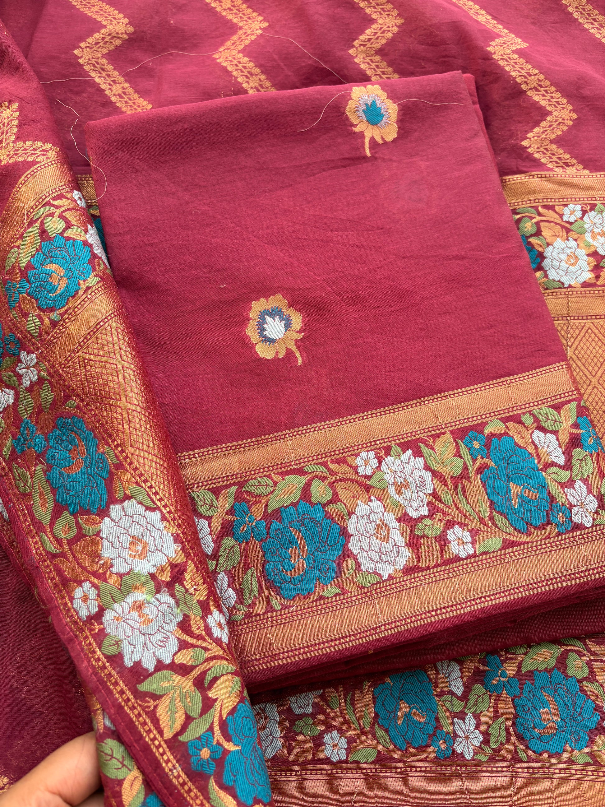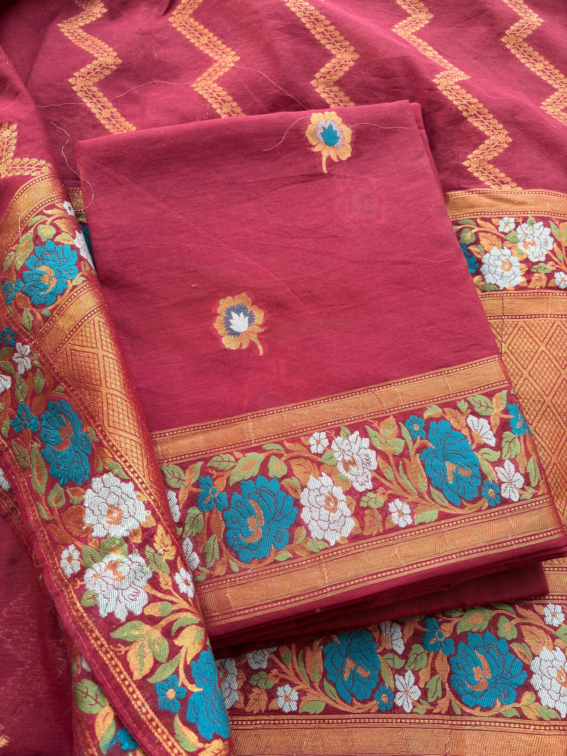 - Each suit is hand-dyed and is made of Pure Chanderi Cotton.