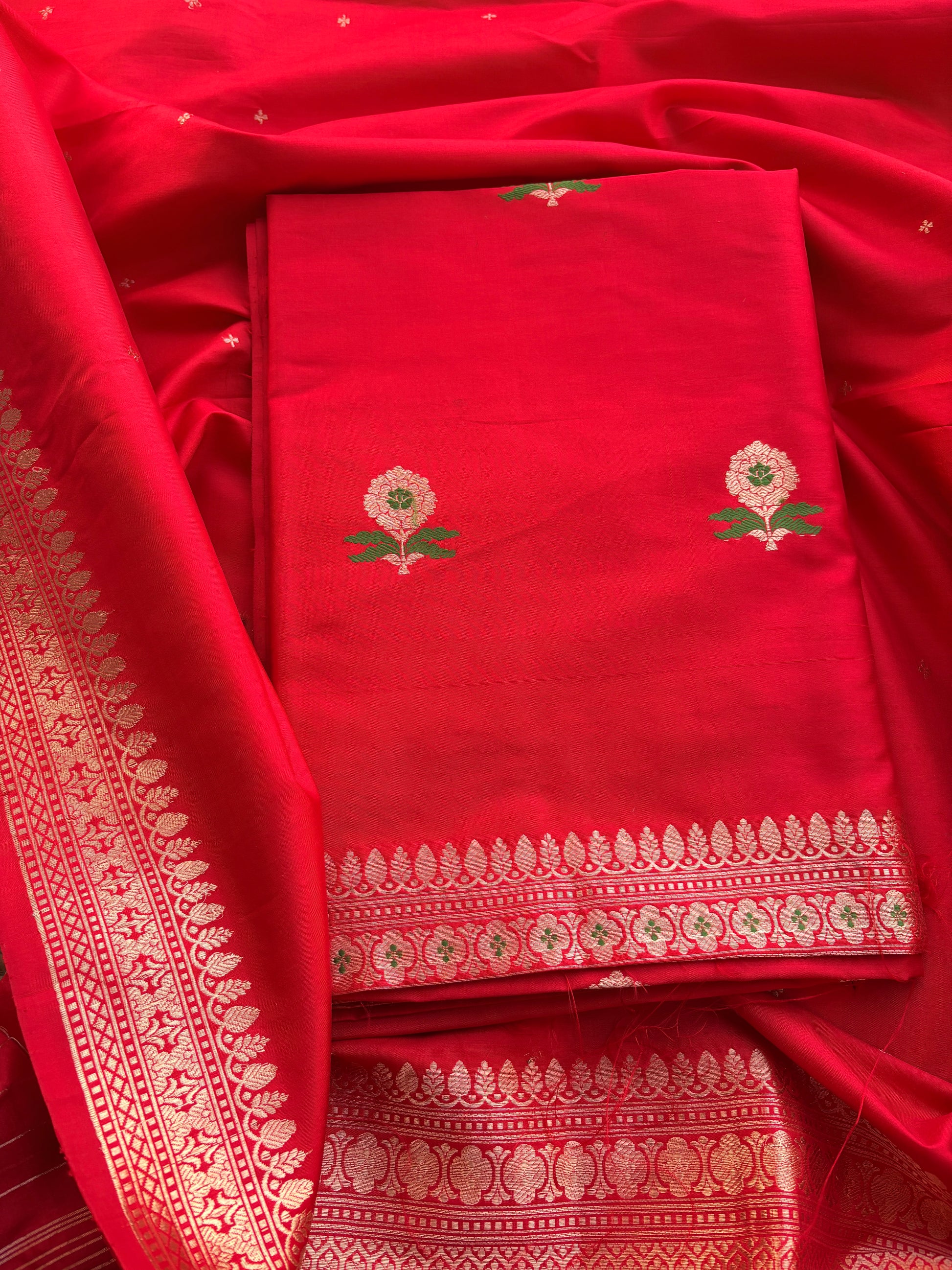 Red pure katan shikargah pure silk saree