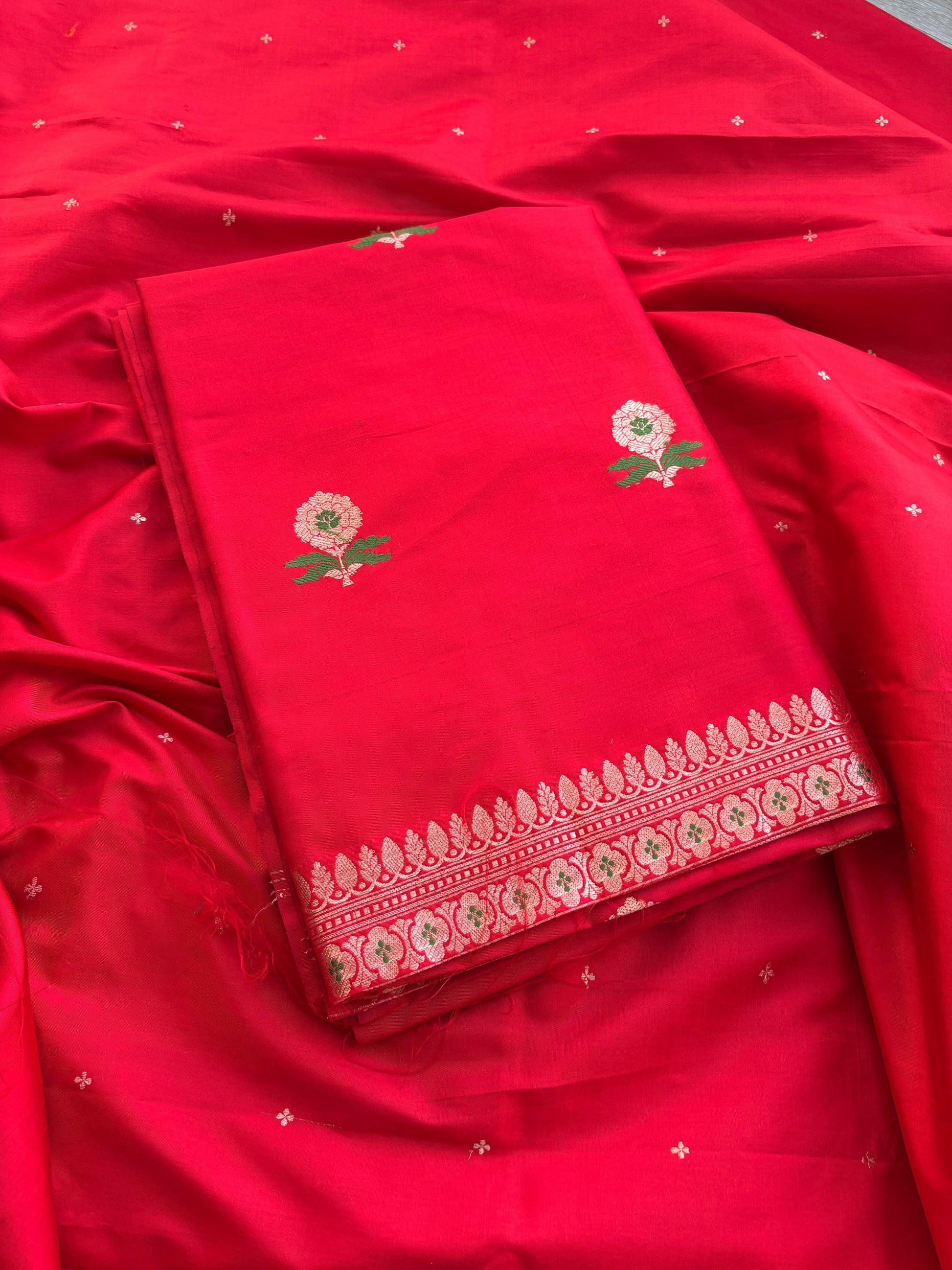 Red pure handloom kora tissue saree.
