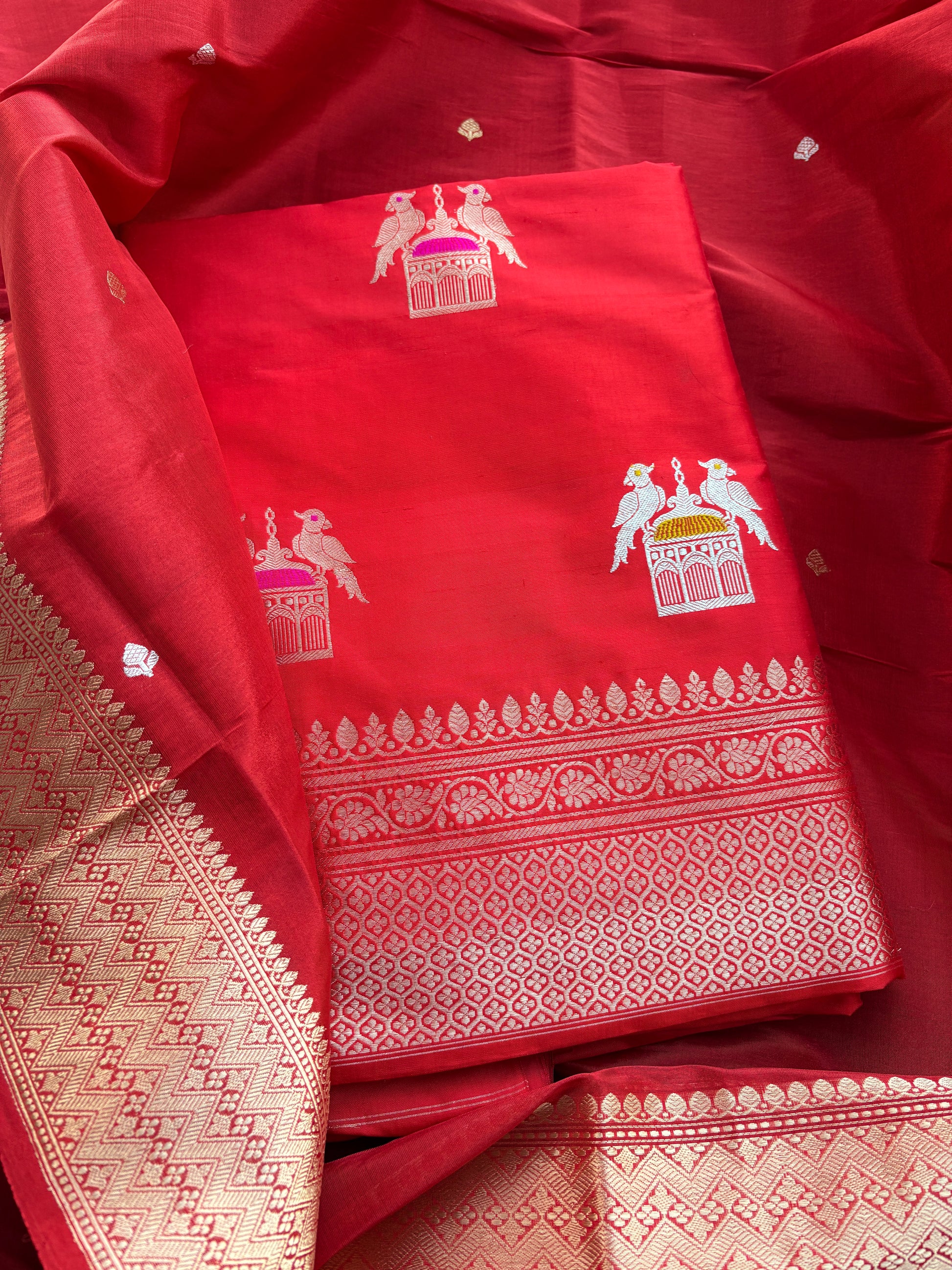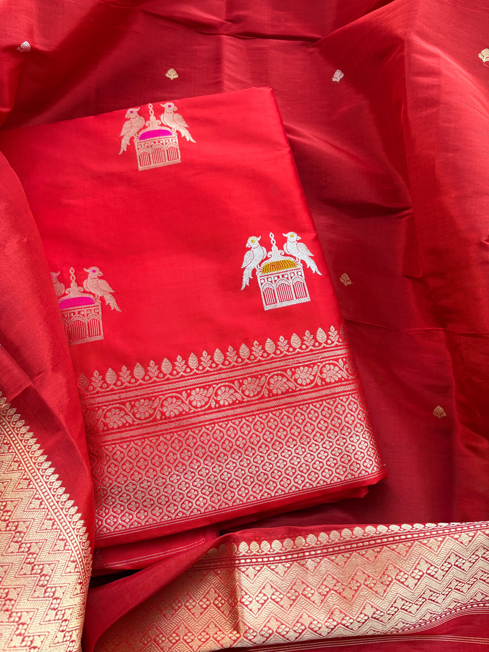 Red katan by katan silk kadhwa suit with tissue dupatta