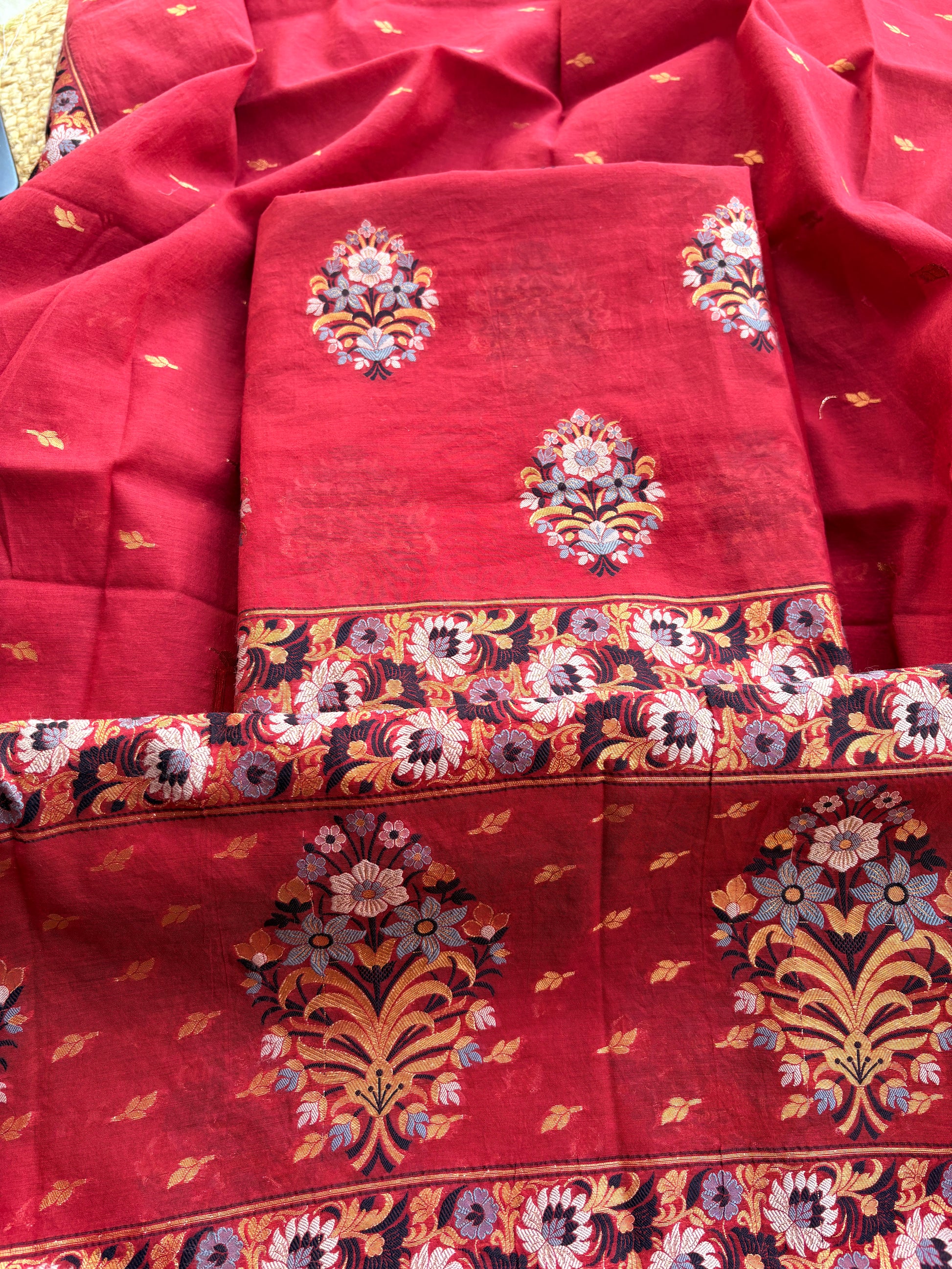 Red meenadar weaving Chanderi suit set