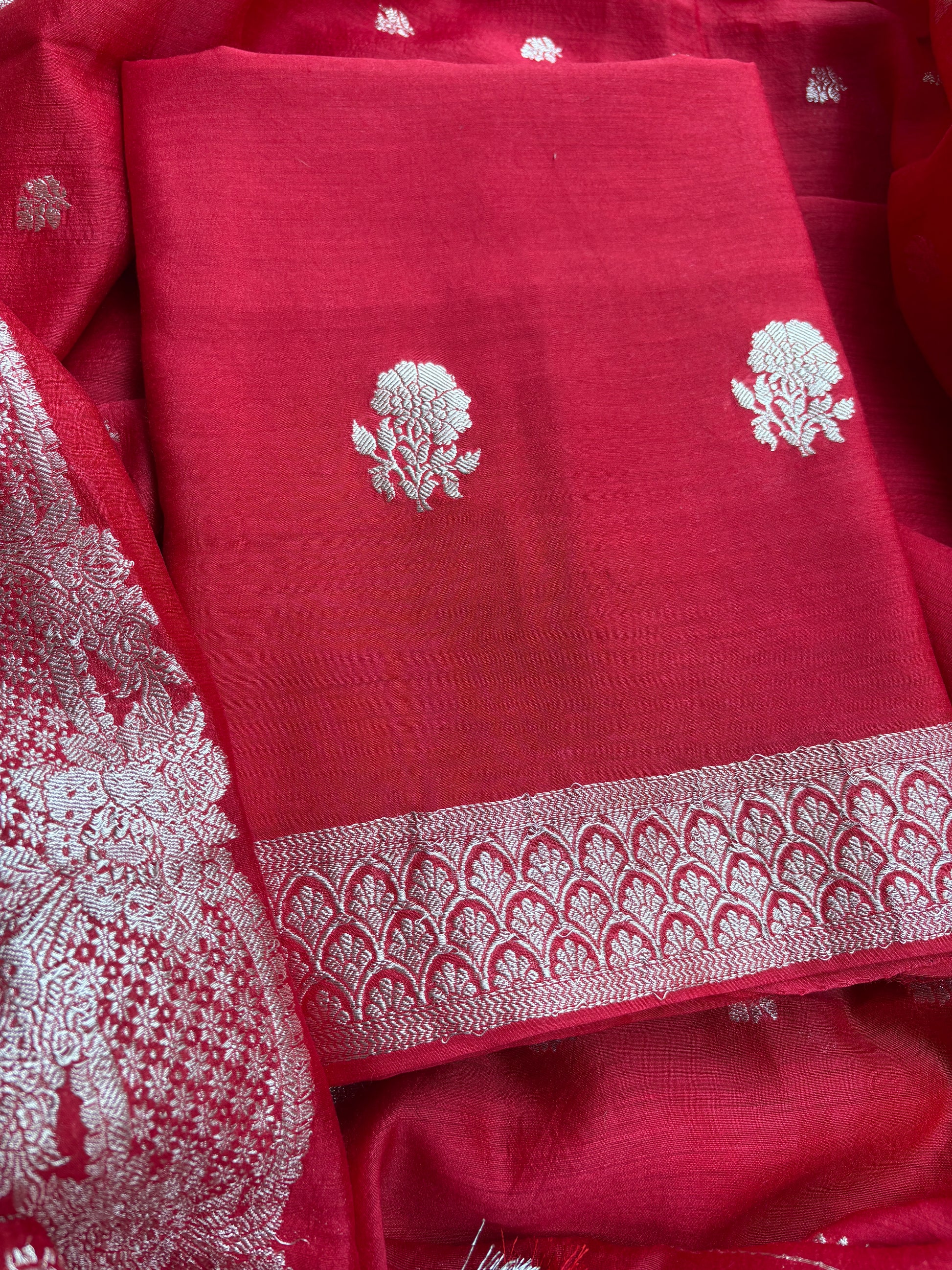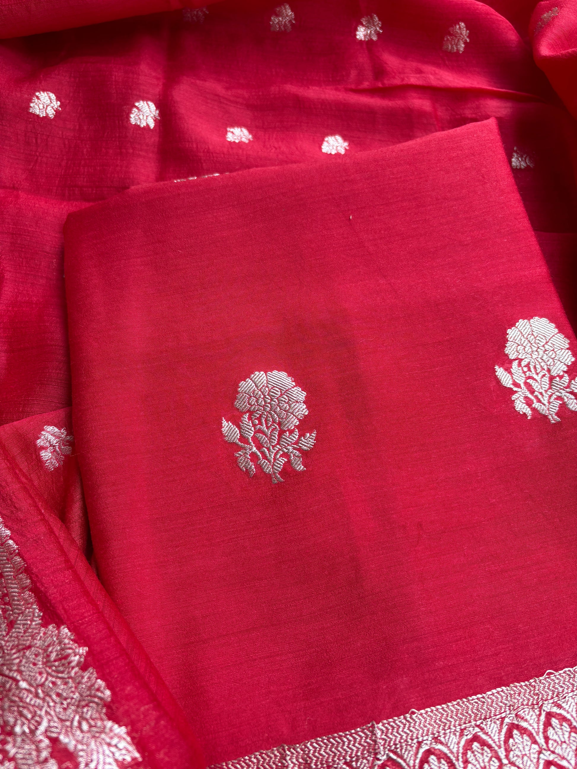 Red pure handloom kora tissue saree.