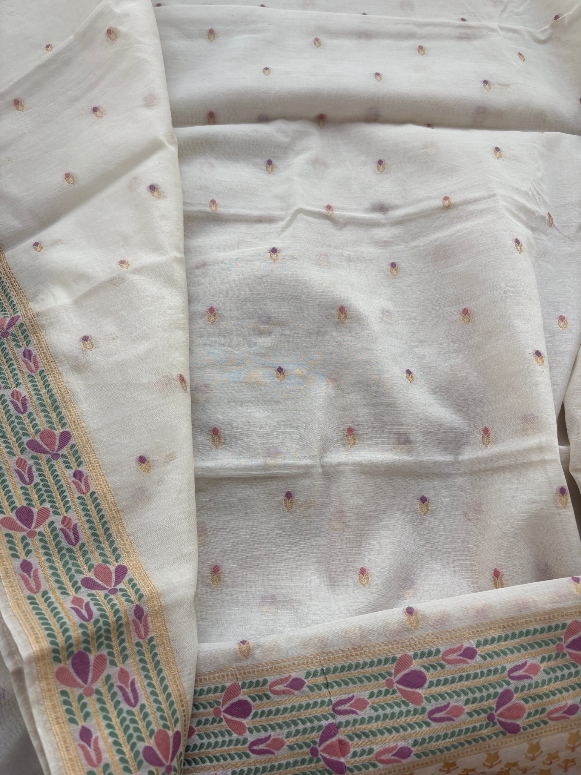 White base Chanderi weaving flower suit set