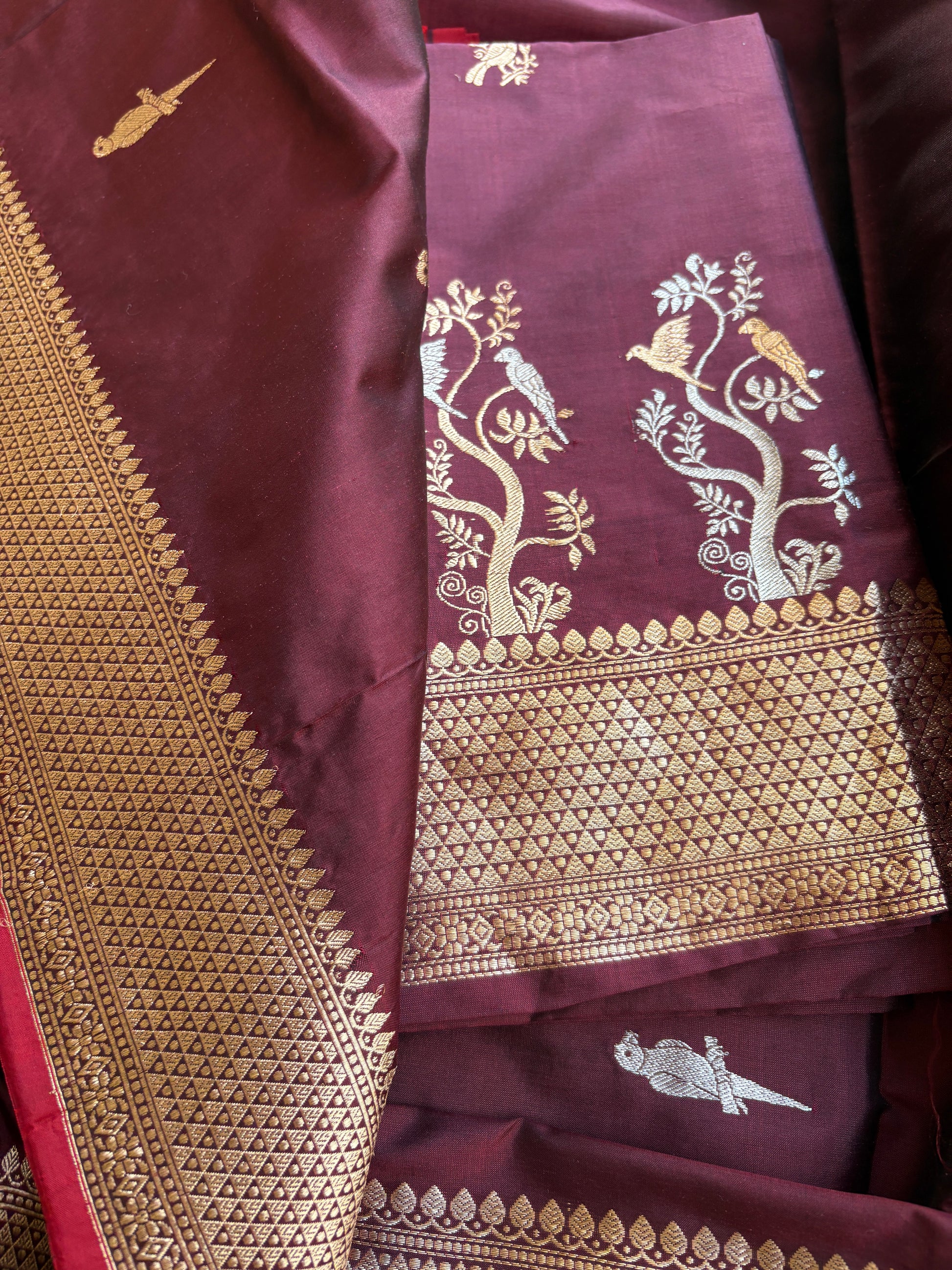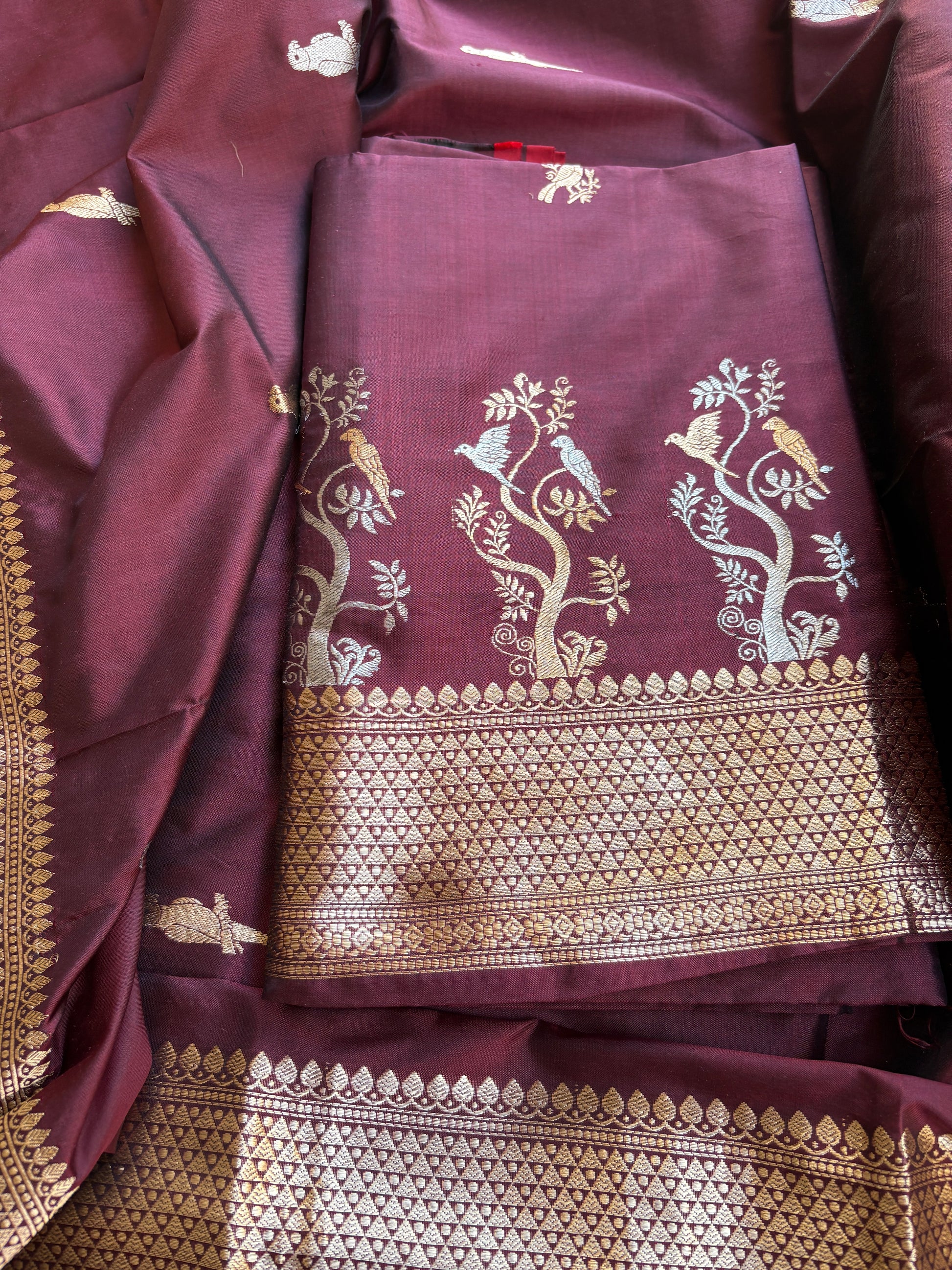 Wine katan by katan silk kadhwa suit set