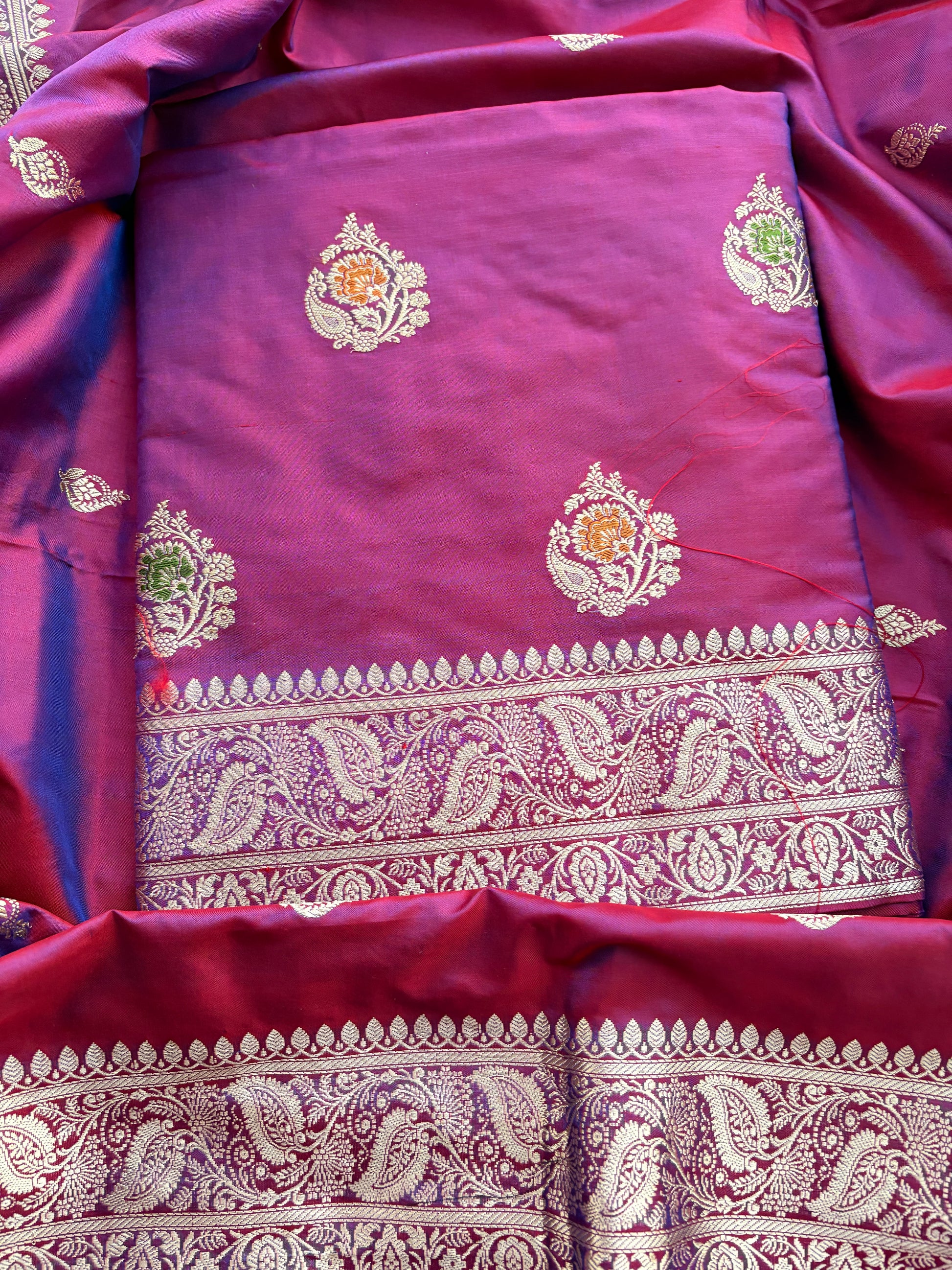 Wine magenta Katan by katan silk kadhwa suit set