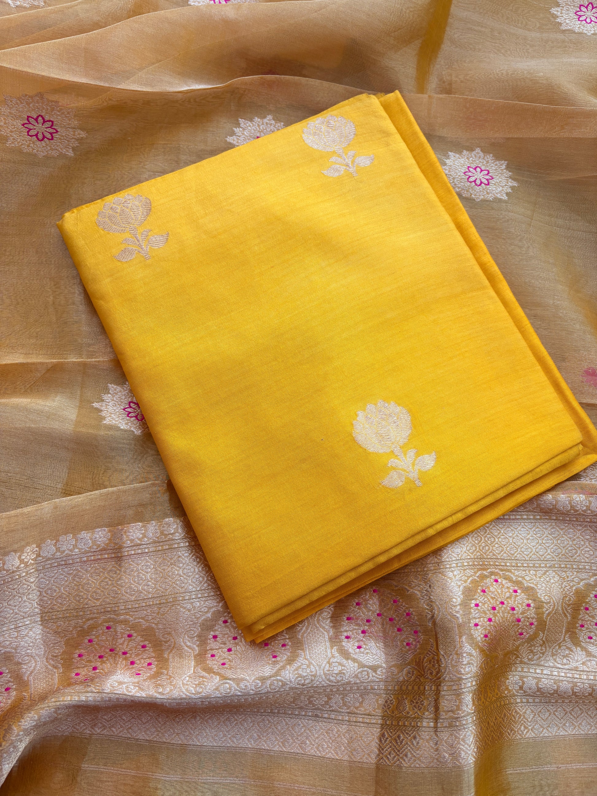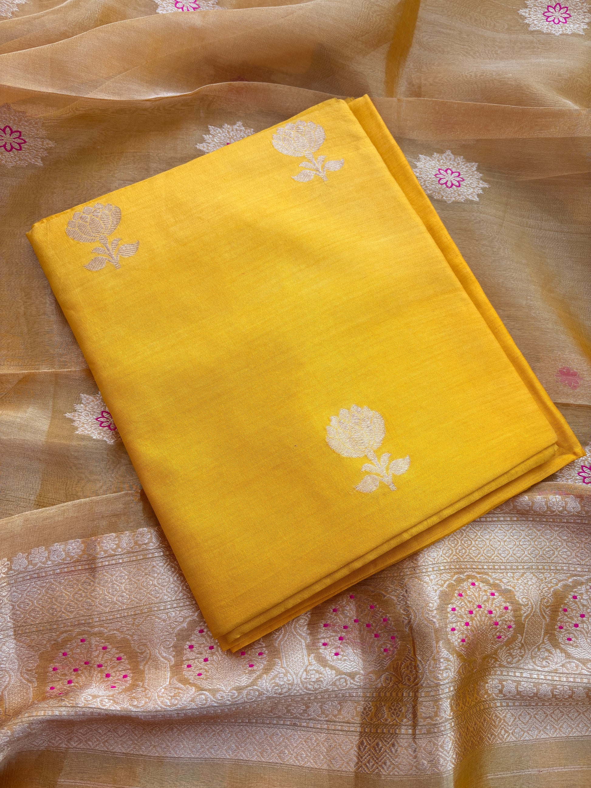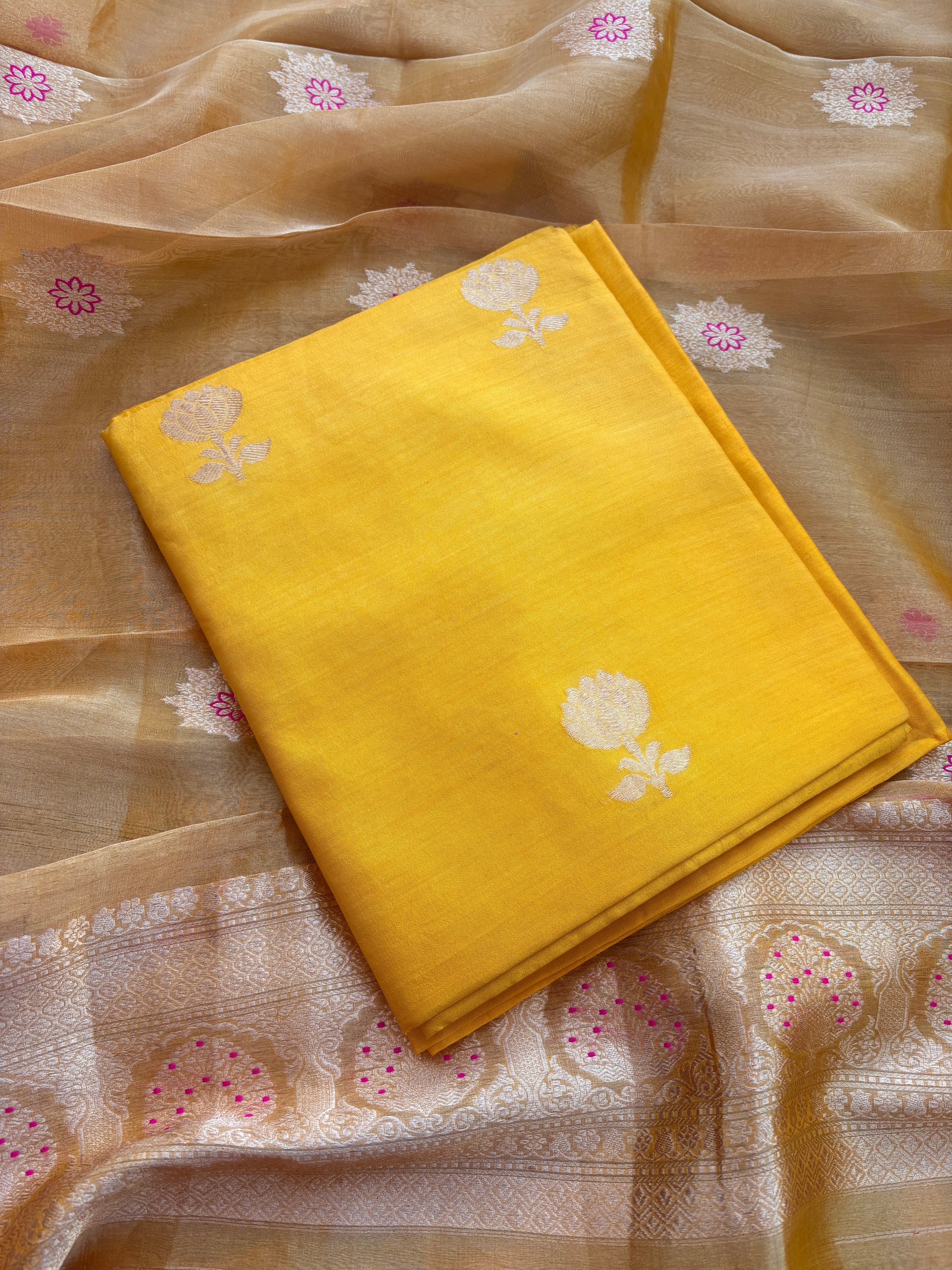Yellow Chiniya silk kadhwa suit with tissue dupatta