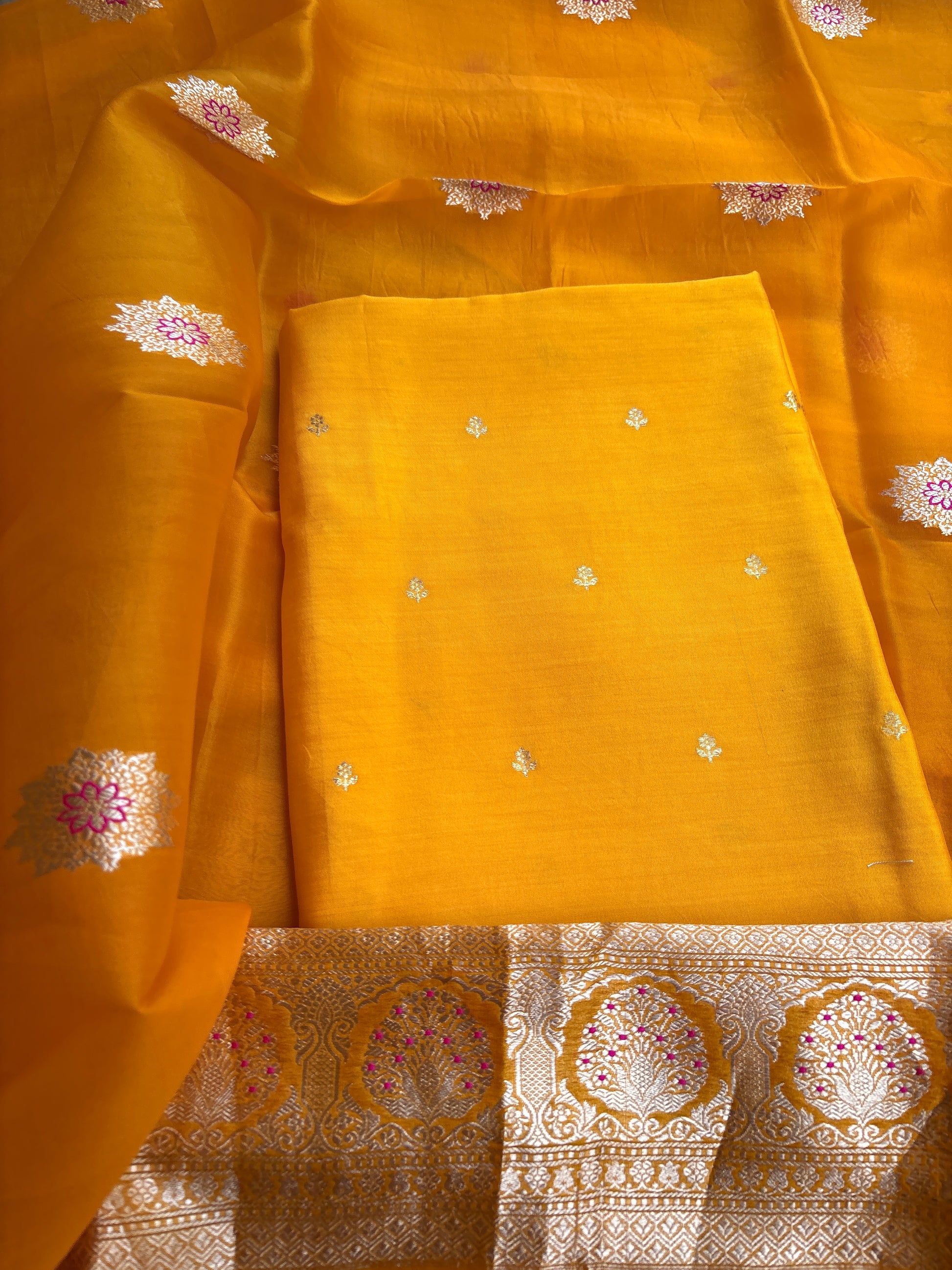 Yellow Chiniya silk kurta , bottom and kora silk dupatta