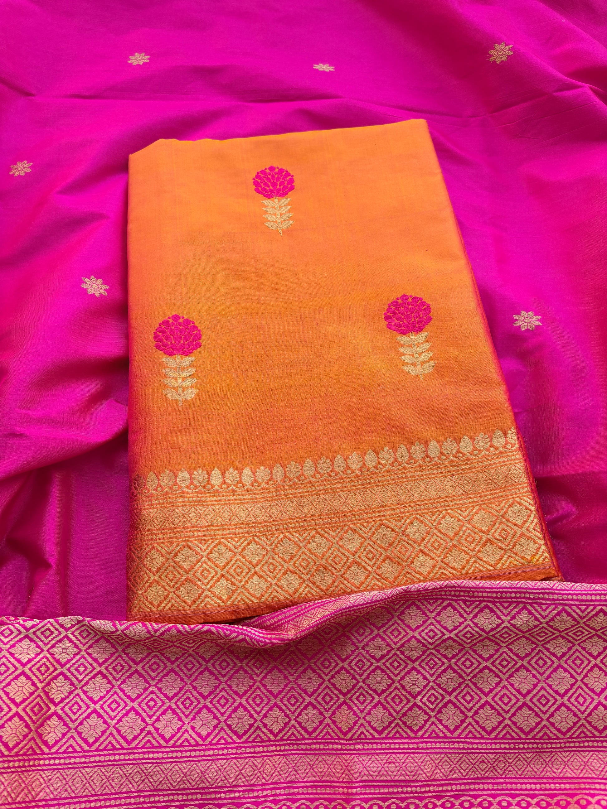 Mustard Pink Mashru silk Saree