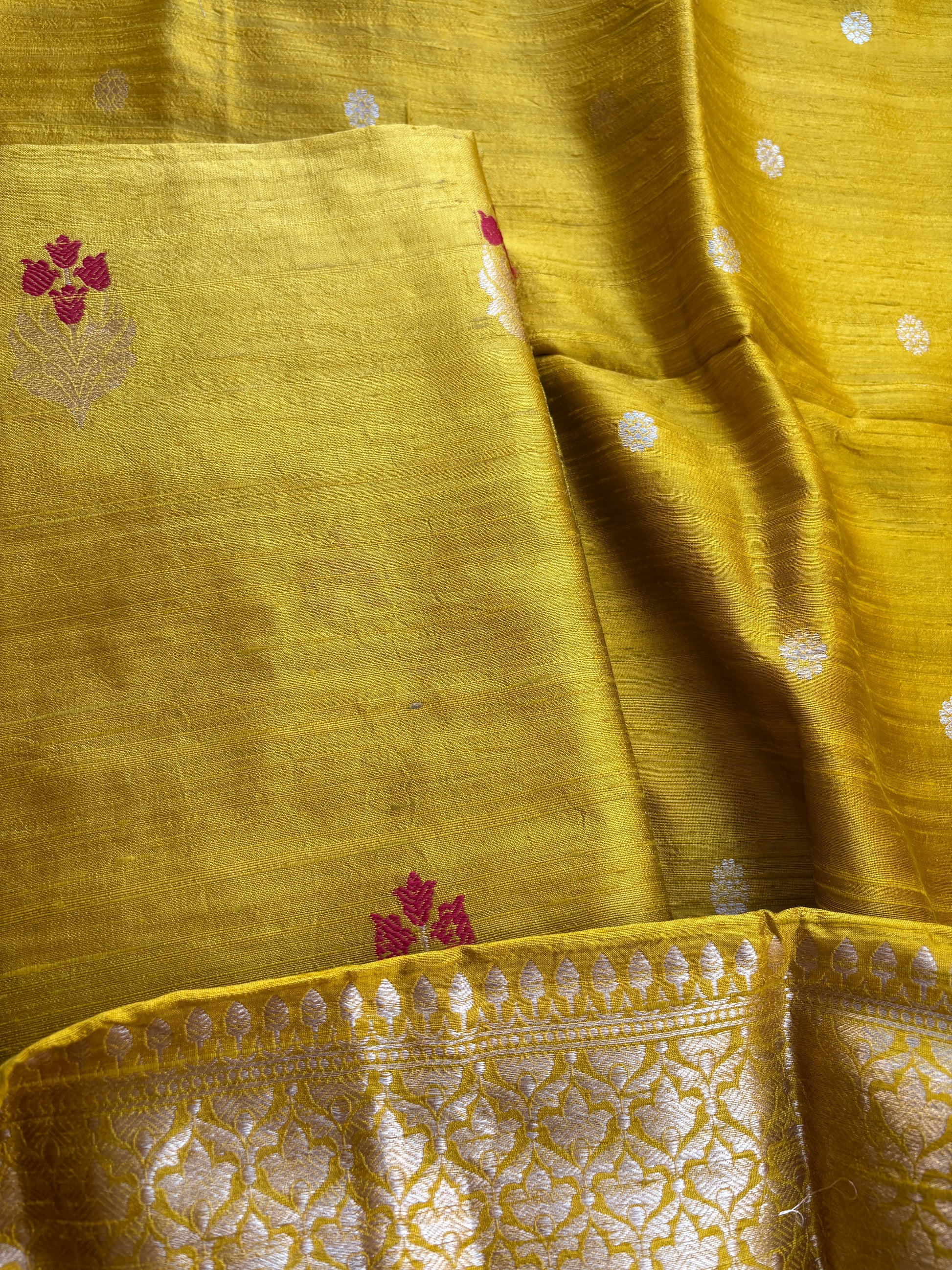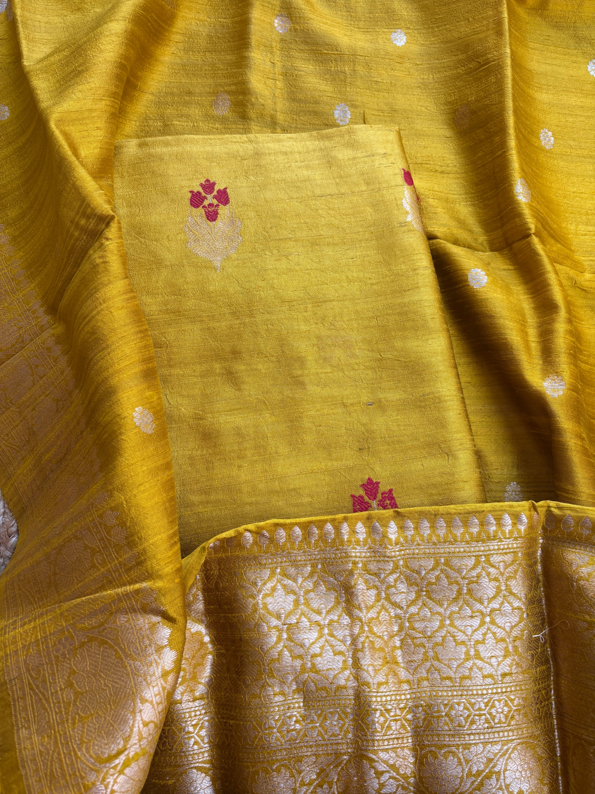 Yellow raw silk kadhwa suit set