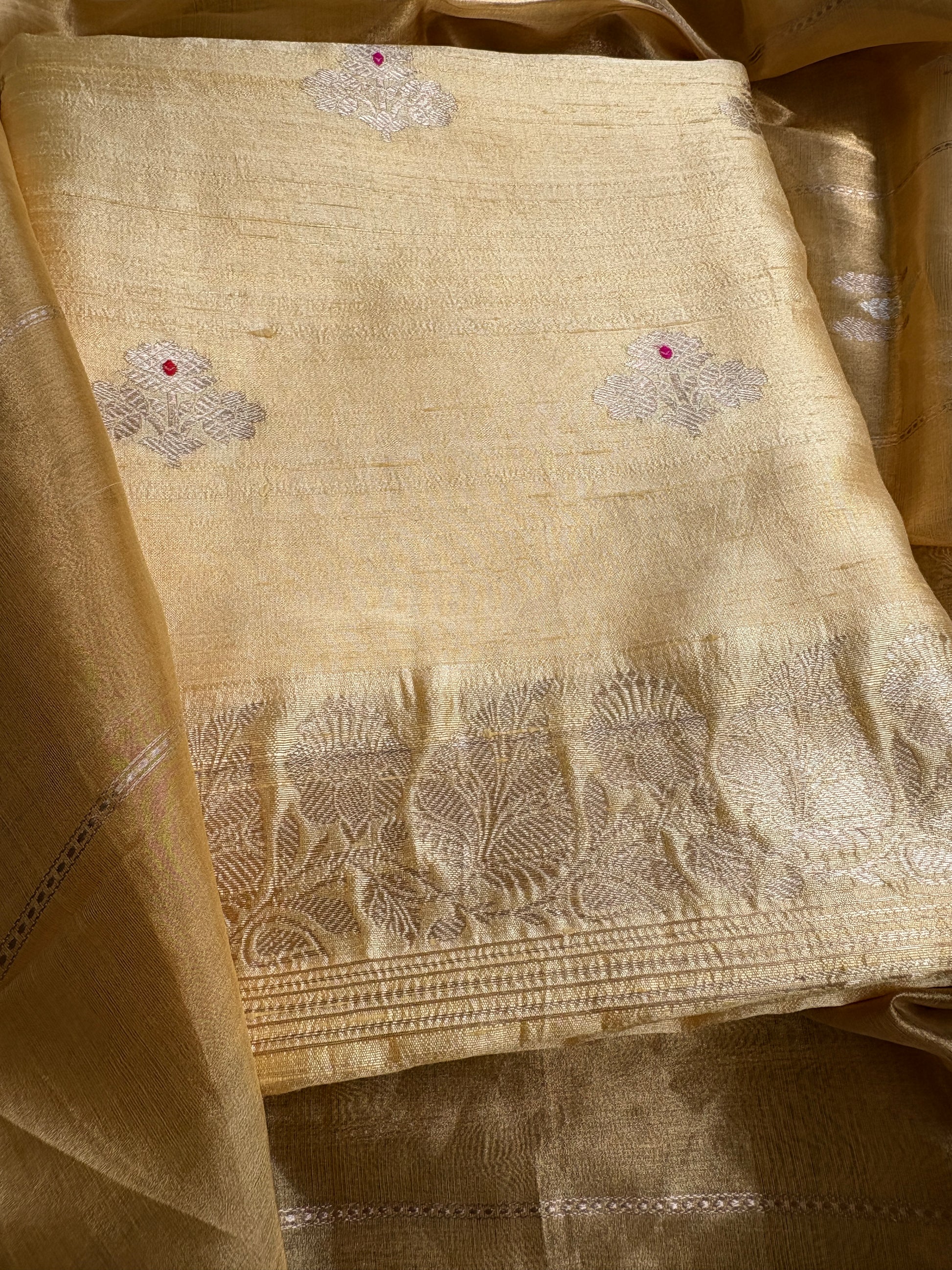 Yellow raw silk kurta, bottom and tissue kadhwa dupatta