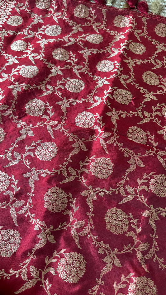 Wine Chiniya silver zari kora silk dupatta , plain bottom