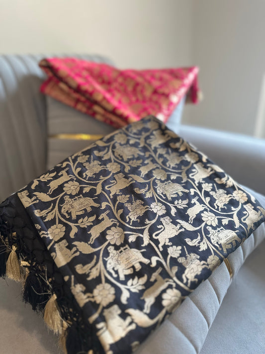 Black silk kurta , tissue kadhwa dupatta , plain bottom