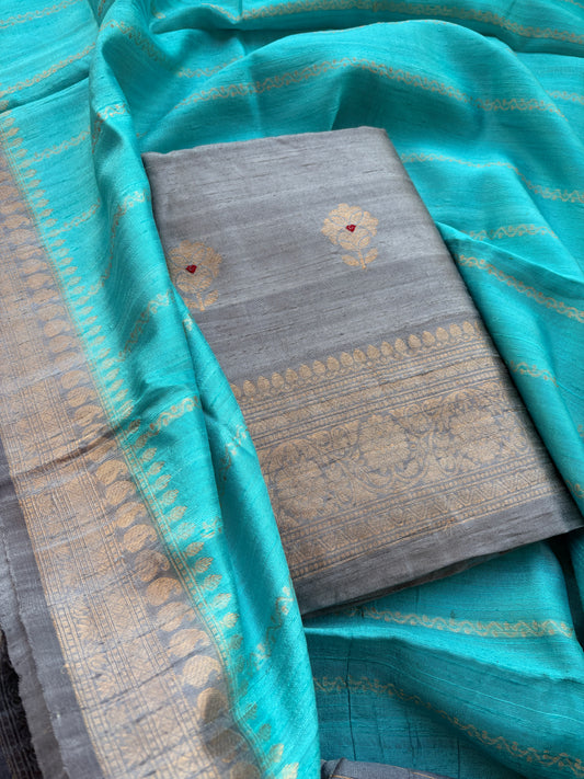Blue raw silk kurta, bottom, Chiniya kora dupatta